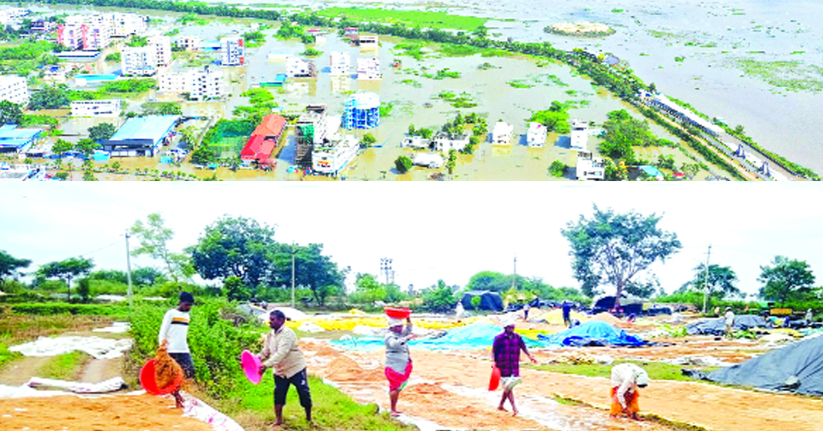 రైతులను ‘మొంథా’ ముంచేసింది. భారీ వర్షాలకు చేతికొచ్చిన ధాన్యం వరదపాలైంది. కొనుగోలు కేంద్రాల్లో ఆరబెట్టిన ధాన్యం వరద నీటిలో కొట్టుకుపోయింది. కాపాడుకునేందుకు రైతులు శతవిధాలా ప్రయత్నించి సరిపడా టార్ఫాలిన్లు లేక.. విఫలమై కన్నీరు పెట్టుకుంటున్నారు. పండించిన పంట కండ్ల ముందే కొట్టుకుపోతున్నా రైతులు అచేతనంగా నిలబడిపోయారు. ఎన్నో అష్టకష్టాలు పడి చివరకు అమ్మకానికి పెట్టిన పంట వరద నీటిపాలవ్వడంతో తీవ్ర ఆందోళనకు గురయ్యారు. గురువారం ఎండకు ఆరబోస్తుండగా బూజుపట్టిన ధాన్యం బయటపడింది.