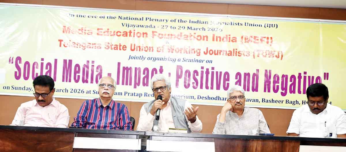 నరేంద్రమోడీ పీఎం కాకముందు ప్రధానమంత్రుల కార్డూన్లు కనిపించేవనీ, ప్రస్తుతం దేశంలో అలాంటి పరిస్థితి లేదని తెలిపారు. మీడియాలో ఏకఛత్రాధిపత్యం దిశగా జరుగుతున్న పరిణామాల నేపథ్యంలో జర్నలిస్టుల పోరాటం కంటే సమాజంలో వ్యక్తులు ఒకరితో ఒకరు దానిపై చర్చిం చుకుంటే ఎక్కువ ఫలితం ఉంటుందని అభిప్రాయపడ్డారు. ఈ సదస్సుకు సీనియర్ పాత్రికేయులు సోమశేఖర్ అధ్యక్షత వహించగా, మెఫీ మేనేజింగ్ ట్రస్టీ, ఐజేయు మాజీ అధ్యక్షులు డి.అమర్ స్వాగతోపన్యాసం చేసారు. టీయూడబ్ల్యూజే రాష్ట్ర అధ్యక్ష, ప్రధా న కార్యదర్శులు కె. విరాహత్ అలీ, కె.రాంనారాయణ తదితరులు పాల్గొన్నారు.