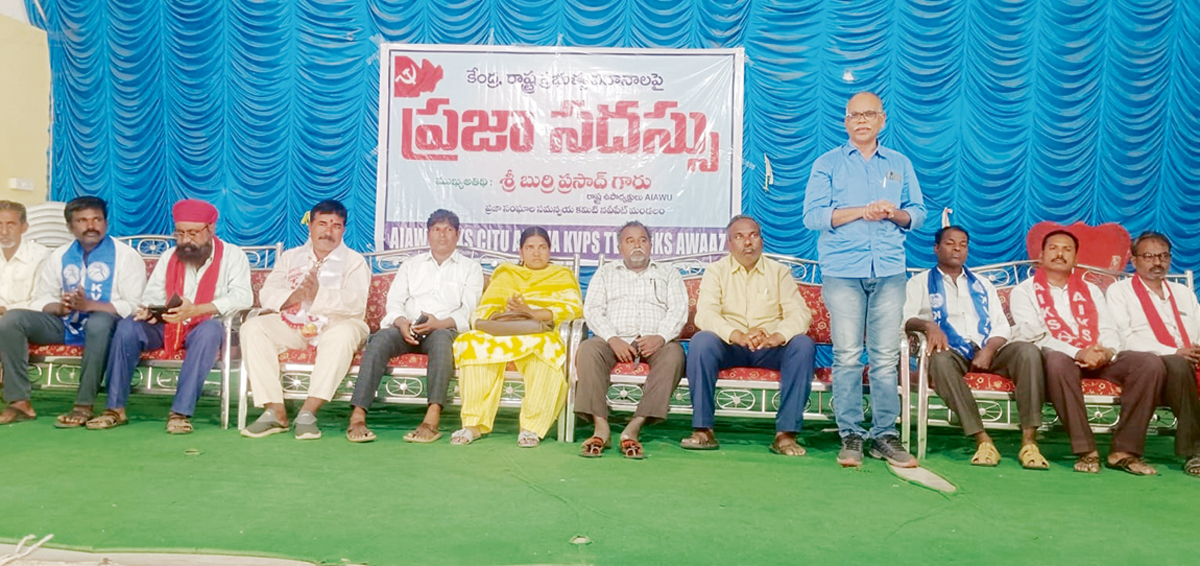 కేంద్ర, రాష్ట్ర ప్రభుత్వాల ప్రజా వ్యతిరేక విధానాలను ప్రతిఘటిస్తూ పోరాటాలతోనే సమస్యల ను పరిష్కరించుకోవాలని వ్యవసాయ కార్మిక సంఘం రాష్ట్ర ఉపాధ్యక్షులు బుర్రి ప్రసాద్ అన్నారు. నిజామాబాద్ జిల్లా నవీపేట్లోని ఎస్ఆర్ గార్డెన్లో ప్రజాసంఘాల ఆధ్వర్యంలో సీఐటీయూ జిల్లా ఉపాధ్యక్షులు నాయక్వాడి శ్రీనివాస్ అధ్యక్షతన నిర్వహించిన ప్రజా సదస్సుతో ఆయన మాట్లాడారు. కేంద్ర, రాష్ట్ర ప్రభుత్వాలు పేద ప్రజలకు, అణగారిన వర్గాలకు వ్యతిరేకంగా పనిచేస్తూ కార్పొరేట్ పెద్దలకు అనుకూలంగా వ్యవహరిస్తున్నాయని తెలిపారు. యూపీఏ ప్రభుత్వ హయాంలో సీపీఐ(ఎం) మద్దతు తో ఉపాధి హామీ చట్టాన్ని తీసుకొస్తే.. బీజేపీ ప్రభుత్వం దేశంలో 7 కోట్ల ఉపాధిహామీ జాబ్ కార్డులను, రాష్ట్రంలో 20 లక్షల జాబ్కార్డులను తొలగించిందన్నారు. తమకు అనుకూల ఓట్లను చేర్చుకొని మతాల పేరుతో విధ్వంసం సృష్టిస్తూ ప్రతికూల ఓట్లను తొలగించే ప్రయత్నం బీజేపీ చేస్తుందని విమర్శించారు. ప్రజాస్వామ్యానికి ప్రమాదం కలిగే విధంగా బీజేపీ ప్రభుత్వం వ్యవహరి స్తుందన్నారు. గ్రామాల్లో వీడీసీ వ్యవస్థను పెంపొం దిస్తూ మామూళ్లను తీసుకుంటూ కులవృత్తులపై ఆజమాయిసీ చేస్తున్నాయని అన్నారు. పదేండ్ల బీఆర్ఎస్ పాలనలో ఇండ్లు కట్టిస్తామని హామీ ఇచ్చినా ఎక్కడా అమలు జరగలేదని తెలిపారు. ప్రస్తుత కాంగ్రెస్ పాలనలో ఇందిరమ్మ ఇండ్లు సైతం కాంగ్రెస్కు అనుకూలమైన వారికే అందుతున్నాయని విమర్శించారు. కేరళలోని సీపీఐ(ఎం) ప్రభుత్వం.. ఇంటి నిర్మాణానికి రూ.10లక్షలు మంజూరు చేస్తున్నదని, రేషన్కార్డుపై 14 రకాల నిత్యవసర సరుకులను పంపిణీ చేస్తున్నదని తెలిపారు. సీపీఐ(ఎం) స్థానిక సమస్యలపై పోరాడుతూనే స్థానిక ఎన్నికల్లో సత్తా చాటాలని పిలుపునిచ్చారు. ఈ సదస్సులో వ్యవసాయ కార్మిక సంఘం, రైతు సంఘం జిల్లా ప్రధాన కార్యదర్శులు పెద్ది వెంకట్రా ములు, పల్లపు వెంకటేష్, ఐద్వా నాయకులు సుజాత, సీఐటీయూ జిల్లా ఉపాధ్యక్షులు రమేష్బాబు, కల్లుగీత కార్మిక సంఘం నాయకులు కోయేడి నర్సింహులు, కేవీపీఎస్ జిల్లా ప్రధాన కార్యదర్శి కొండా గంగాధర్, వృత్తిదారుల సంఘం నాయకులు వడ్డెన్న, గ్రామపంచాయతీ నాయకులు ఆంజనేయు లు, నాయకులు గోవింద్, దేవేందర్ సింగ్, గౌతమ్, శేఖర్, మహబూబ్, సావిత్రి, రమాదేవి, వసంత్ తదితరులు పాల్గొన్నారు.