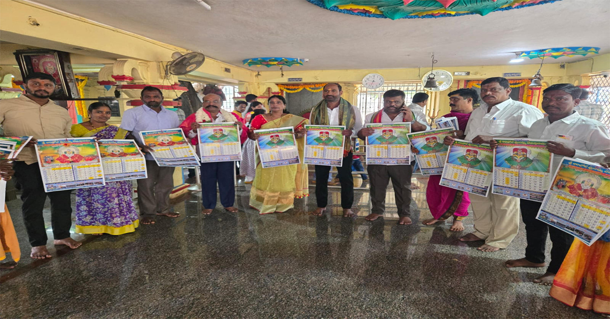 నవతెలంగాణ-చౌటుప్పల్ రూరల్: చౌటుప్పల్ మండలంలోని దండు మల్కాపురం శ్రీ ఆందోల్ మైసమ్మ దేవస్థానం 2026 సంవత్సరానికి సంబంధించి..నూతన క్యాలెండర్ను దేవస్థాన చైర్మన్ చిలుకూరి మల్లారెడ్డి కార్యనిర్వహణ అధికారి సల్వాది మోహన్ బాబు గురువారం దేవాలయ ఆవరణలో ఆవిష్కరించారు. ఈ కార్యక్రమంలో ట్రినిటీ స్కూల్ చైర్మన్ కె.వి.బి.కృష్ణారావు ప్రిన్సిపాల్ వి.మంజులతో పాటు జూనియర్ అసిస్టెంట్ సత్తిరెడ్డి పలువురు పాల్గొన్నారు. నూతన సంవత్సరం సందర్భంగా దేవస్థానానికి భక్తులు పెద్ద ఎత్తున తరలివచ్చి అమ్మవారిని భక్తిశ్రద్ధలతో దర్శించుకున్నారు. భక్తులకు ఎలాంటి ఇబ్బందులు కలగకుండా ఆలయ యాజమాన్యం ముందస్తుగా అన్ని ఏర్పాట్లు చేశామని చైర్మన్ మల్లారెడ్డి తెలిపారు