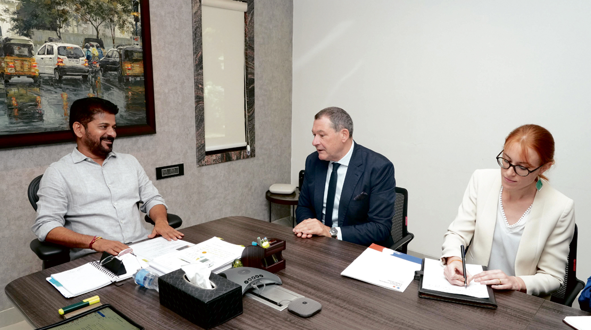 హైదరాబాద్లో ఫ్రెంచ్ బ్యూరో కార్యాలయాన్ని మరింత బలోపేతం చేయాలని సీఎం రేవంత్ రెడ్డి ఫ్రాన్స్ కాన్సుల్ జనరల్ మార్క్ లామీ బృందానికి సూచించారు. శనివారం ఆ బృందం సీఎంతో మర్యాదపూర్వకంగా భేటీ అయ్యింది. ఫ్రాన్స్కు సంబంధించి హైదరాబాద్లో నిర్మాణంలో ఉన్న ప్రాజెక్టుల ప్రస్తుత పరిస్థితిపై ఈ సందర్భంగా చర్చించారు. హైదరాబాద్లో మరిన్ని పెట్టుబడులు పెట్టాలని ఫ్రాన్స్ బృందాన్ని సీఎం కోరారు. సమావేశంలో మౌద్ మిక్వా, స్పెషల్ సీఎస్ జయేష్ రంజన్, విష్ణువర్ధన్ రెడ్డి, అజిత్ రెడ్డి తదితరులు పాల్గొన్నారు.