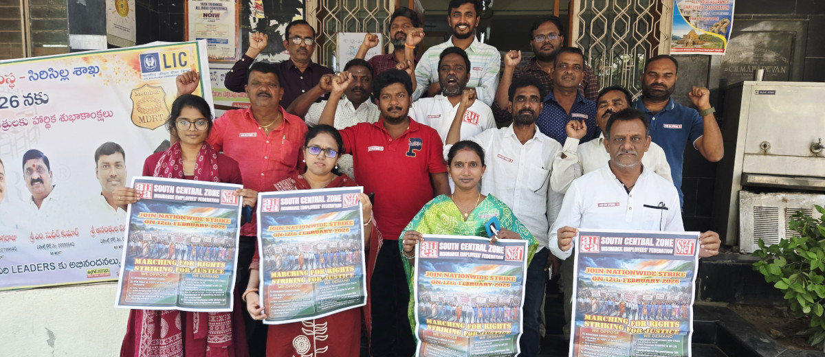 కొత్త లేబర్ కోడ్స్ అమలు చేయడాన్ని పూర్తిగా వ్యతిరేకించడం జరిగిందనీ, అవుట్సోర్సింగ్ ఉద్యోగాల నియామకాన్ని పూర్తీగా విరమించుకోవాలని ,ప్రభుత్వరంగల సంస్థల ప్రైవేటీకరణను విరమించుకోవాలని డిమాండ్ చేశారు.సమ్మెలో ఇన్సూరెన్స్ ఉద్యోగులతో పాటు బ్యాంకు ఉద్యోగులు పాల్గొన్నారు . సమ్మెలోశ్రీకాంత్ ,పర్వతి మల్లేశం ,శివాని ,గాజుల శ్రీనివాస్ ,బాలగంగాధర్ , ఆయిల్ల శ్రీనివాస్ ,నర్సింహారెడ్డి , కిరణ్,శరత్, భూమయ్య బద్దిరాజు,స్రవంతి ,కావ్య పాల్గొన్నారు.