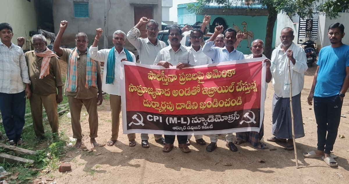 అమెరికా మద్దతుతో ఇజ్రాయిల్ పాలస్తీనా ప్రజలపై కొనసాగిస్తున్న మారణ హోమాన్ని తీవ్రంగా వ్యతిరేకిస్తూ, పాలస్తీనా ప్రజా పోరాటానికి సిపిఎంఎల్ న్యూ డెమోక్రసీ మద్దతు తెలుపుతూ మంగళవారం  నందిపేట్ మండలంలోని వెల్మల్ గ్రామంలో సిపిఎంఎల్ న్యూడెమోక్రసీ ఆధ్వర్యంలో పాలస్తీనా ప్రజలకు సంఘీభావ ప్రదర్శన నిర్వహించినట్లు న్యూ డెమోక్రసీ జిల్లా సహాయ కార్యదర్శి దాసు తెలిపారు. ఈ సందర్భంగా ఆయన మాట్లాడుతూ.. గత రెండు సంవత్సరాల నుండి ఇజ్రాయిల్ అమెరికా మద్దతుతో పాలస్తీనా జాతి ప్రజలని నిర్మూలించే కుట్ర చేస్తుందని ఆయన అన్నారు.