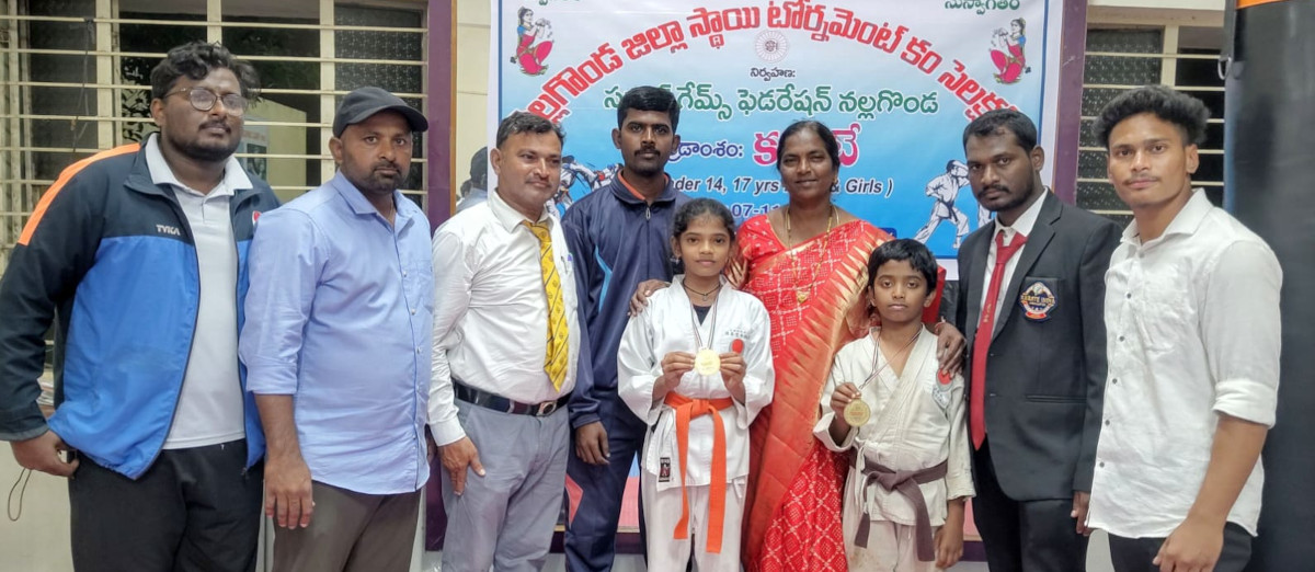 69వ ఉమ్మడి నల్గొండ జిల్లా ఎస్ జి ఎఫ్ఐ కరాటే పోటీల ఎంపికలో నకిరేకల్, నార్కట్ పల్లి మండలాలకు చెందిన విద్యార్థిని, విద్యార్థులు రాష్ట్రస్థాయి కరాటే పోటీలకు ఎంపికైనట్లు జెకె ఎ ఐ జిల్లా ఉపాధ్యక్షుడు అంతటి సోములు గౌడ్ తెలిపారు. అండర్ 14 బాలికలు 30 కేజీల విభాగంలో శ్రీలక్ష్మి, అండర్ 14 బాలుర 30 కేజీల విభాగంలో మోహన్ గణేష్ నకిరేకల్ కు చెందిన విద్యార్థులు ఎంపికైనట్లు తెలిపారు. అండర్ 17 బాలుర 35 కేజీల విభాగంలో విగ్నేష్, 40 కేజీల విభాగంలో మని కృష్ణ ఎంజేపి నార్కట్ పల్లి హాస్టల్ కు చెందిన విద్యార్థులు ఎంపికైనట్లు తెలిపారు. రాష్ట్రస్థాయి పోటీలకు ఎంపికైన విద్యార్థులకు ఎస్ జి ఎఫ్ఐ నల్గొండ జిల్లా కార్యదర్శి దగ్గుపాటి విమల మెడల్స్, సర్టిఫికెట్ అందజేసినట్లు తెలిపారు.