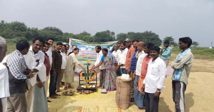 నవతెలంగాణ-పాలకుర్తి: కొనుగోలు కేంద్రాల్లోనే ధాన్యానికి మద్దతు ధర లభిస్తుందని తొర్రూరు సొసైటీ చైర్మన్ గోనె మైసిరెడ్డి అన్నారు. మండలంలోని శాతాపురంలో తొర్రూరు సొసైటీ ఆధ్వర్యంలో ఏర్పాటుచేసిన ధాన్యం కొనుగోలు కేంద్రాన్ని సొసైటీ రిజిస్టార్ అసిస్టెంట్ మానిటరింగ్ అధికారి దివ్య తో కలిసి ప్రారంభించారు. ఈ సందర్భంగా మైసిరెడ్డి మాట్లాడుతూ ధాన్యం కొనుగోలు కేంద్రాల్లో రైతులు తీసుకువచ్చిన ధాన్యాన్ని మధ్య దళారీలు కొనుగోలు చేస్తే చర్యలు తప్పవని హెచ్చరించారు. రైతులు పండించిన ధాన్యానికి మద్దతు ధర కల్పించాలని లక్ష్యంతో ప్రజా ప్రభుత్వం ధాన్యం కొనుగోలు కేంద్రాలను ప్రారంభిస్తుందని తెలిపారు. తేమశాతం 17 మించరాదని, తాలు లేకుండా ఆరబెట్టిన ధాన్యాన్ని మాత్రమే కొనుగోలు కేంద్రాలకు తీసుకురావాలని సూచించారు. - సన్న రకం ధాన్యానికి ప్రభుత్వం క్వింటాలకు 500 బోనస్ అందజేస్తుందని అన్నారు. రైతు సంక్షేమం కోసమే సజా ప్రభుత్వం పని చేస్తుందని తెలిపారు. ధాన్యం కొనుగోలు కేంద్రాలను రైతులు సద్వినియోగం చేసుకొని, కొనుగోలు కేంద్రాలకే ధాన్యాన్ని తీసుకురావాలని రైతులకు సూచించారు. ఈ కార్యక్రమంలో సొసైటీ వైస్ చైర్మన్ రందన్ నాయక్, పాలకుర్తి మార్కెట్ కమిటీ వైస్ చైర్మన్ అనుముల మల్లారెడ్డి, తొర్రూరు సొసైటీ డైరెక్టర్ ఐలేని నర్సమ్మ, సొసైటీ సీఈవో మాసంపల్లి రణధీర్, పసులాది నాగరాజు, మార్కెట్ డైరెక్టర్ పసులాది యాకయ్య, మాజీ ఉపసర్పంచ్ మారుజోడు సంతోష్, పాలకుర్తి దేవస్థాన మాజీ డైరెక్టర్ లోని శ్రీనివాస్, నాయకులు ఏలూరి యాకన్న, గన్న శ్రీనివాస్, ఏలూరి కృష్ణమూర్తి, నాయిని నర్సిరెడ్డి, సొసైటీ సిబ్బంది రాజేందర్ తదితరులు పాల్గొన్నారు.