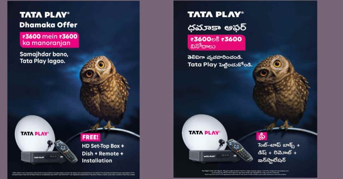 భారతదేశంలోని ప్రముఖ కంటెంట్ పంపిణీ ప్లాట్ఫామ్ టాటా ప్లే, తన తాజా డీటీహెచ్ (DTH) ‘సమఝ్దార్ బనో, టాటా ప్లే లగావో’ (తెలివిగా వ్యవహరించు, టాటా ప్లే పెట్టించుకో) పేరిట క్యాంపెయిన్ ప్రారంభించామని ప్రకటించింది. సంప్రదాయ ప్రకటనల విధానానికి భిన్నంగా, ఈ క్యాంపెయిన్లో కృత్రిమ మేధస్సు సృష్టించిన పాత్రలు- తెలివైన గుడ్లగూబ, చమత్కారమైన గాడిదను ఉపయోగించుకుని, వినియోగదారుల కోసం టాటా ప్లే విలువ ప్రతిపాదనలను హాస్యభరితమైన, సాపేక్షమైన రీతిలో చిత్రీకరించారు.