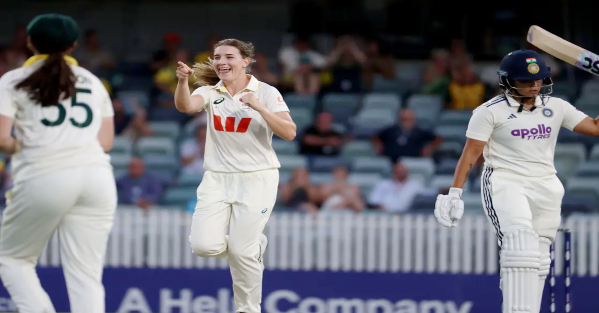 నవతెలంగాణ – హైదరాబాద్ : పెర్త్ వేదికగా జరిగిన ఏకైన పింక్ బాల్ టెస్ట్ మ్యాచ్లో టీమ్ఇండియా వుమెన్స్పై ఆస్ట్రేలియా మహిళల జట్టు 10 వికెట్ల తేడాతో ఘన విజయం సాధించింది. 25 పరుగుల విజయలక్ష్యంతో బరిలోకి దిగిన కంగారూ జట్టు 4.3 ఓవర్లలో ఒక్క వికెట్ కూడా కోల్పోకుండానే 28 పరుగులు సాధించింది. జార్జియా (16), లిచ్ఫీల్డ్ (11) నాటౌట్గా నిలిచారు. అంతకు ముందు.. 105/6 ఓవర్నైట్ స్కోర్తో రెండో ఇన్నింగ్స్లో భాగంగా మూడో రోజు ఆటను ప్రారంభించిన టీమ్ఇండియా 149 పరుగులకు ఆలౌటైంది. ఆస్ట్రేలియా ముందు 24 పరుగుల స్వల్ప లక్ష్యాన్ని నిర్దేశించింది. ప్రతీకా రావల్ (63) ఒంటరి పోరాటం చేసింది. స్నేహ్ రాణా (30) ఫర్వాలేదనిపించింది. రెండో ఇన్నింగ్స్లో స్మృతి మంధాన (2), షెఫాలీ వర్మ (5), జెమీ రోడ్రిగ్స్ (14), హర్మన్ప్రీత్ కౌర్ (11), దీప్తి శర్మ (9), రిచా ఘోష్ (0), కాశ్వీ గౌతమ్ (0) ఇలా అందరూ విఫలమయ్యారు. క్రాంతి గౌడ్ (0) నాటౌట్గా నిలిచింది. ఆస్ట్రేలియా బౌలర్లలో హామిల్టన్ 3, అన్నాబెల్, అలానా కింగ్, గార్డ్నర్ తలో రెండు, డార్సీ బ్రౌన్ ఒక వికెట్ తీసుకున్నారు. ఈ మ్యాచ్లో తొలుత బ్యాటింగ్కు దిగిన భారత్ మొదటి ఇన్నింగ్స్లో 198 పరుగులు చేస్తే.. ఆసీస్ 323 పరుగులు చేసిన విషయం తెలిసిందే.