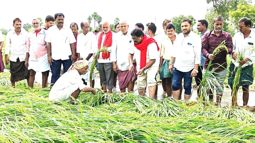 ఆరుగాలం శ్రమిస్తున్న అన్నదాతలకు కష్టాలు తప్పడం లేదు. నారుమళ్లు వేసిన నాటు నుంచి మొదలుకొని దుక్కిలు దున్ని, నాట్లు వేసి, యూరియా చల్లి, పొలాలకు సరిపోను సాగు నీరు అందించి, అకాల వర్షాలకు తట్టుకొని, చివరికి పండించిన పంటల అమ్ముకునే వరకు రైతుల కష్టాలు అన్నీ ఇన్ని కావు…తాజా ఈ వానకాలం సీజన్లో యూరియా కష్టాలు తట్టుకొగా ఇప్పుడు అకాల వర్షాలతో రైతులు నష్టపోతున్నారు. నల్గొండ జిల్లాలో గత 3 రోజుల నుంచి కురుస్తున్న అకాల వర్షాల కారణంగా జిల్లాలో వేలాది ఎకరాల పంట నేలకొరిగింది. అలా పడిపోయిన పంటలను నల్గొండ జిల్లా మిర్యాలగూడ మండలం లోని ఐలాపురం గ్రామ శివారులోని పొలాలను సీపీఐ(ఎం) రాష్ట్ర కార్యదర్శి వర్గ సభ్యులు మాజీ ఎమ్మెల్యే జూలకంటి రంగారెడ్డి శుక్రవారం పరిశీలించారు.