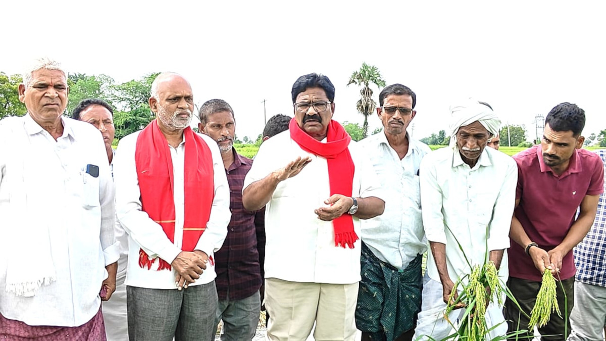 ఆరుగాలం శ్రమిస్తున్న అన్నదాతలకు కష్టాలు తప్పడం లేదు. నారుమళ్లు వేసిన నాటు నుంచి మొదలుకొని దుక్కిలు దున్ని, నాట్లు వేసి, యూరియా చల్లి, పొలాలకు సరిపోను సాగు నీరు అందించి, అకాల వర్షాలకు తట్టుకొని, చివరికి పండించిన పంటల అమ్ముకునే వరకు రైతుల కష్టాలు అన్నీ ఇన్ని కావు…తాజా ఈ వానకాలం సీజన్లో యూరియా కష్టాలు తట్టుకొగా ఇప్పుడు అకాల వర్షాలతో రైతులు నష్టపోతున్నారు. నల్గొండ జిల్లాలో గత 3 రోజుల నుంచి కురుస్తున్న అకాల వర్షాల కారణంగా జిల్లాలో వేలాది ఎకరాల పంట నేలకొరిగింది. అలా పడిపోయిన పంటలను నల్గొండ జిల్లా మిర్యాలగూడ మండలం లోని ఐలాపురం గ్రామ శివారులోని పొలాలను సీపీఐ(ఎం) రాష్ట్ర కార్యదర్శి వర్గ సభ్యులు మాజీ ఎమ్మెల్యే జూలకంటి రంగారెడ్డి శుక్రవారం పరిశీలించారు.