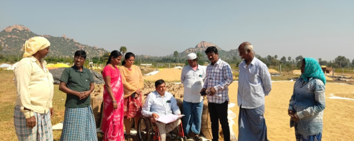 ఐకెపి ఆధ్వర్యంలో మండల కేంద్రంలో ఏర్పాటు చేసిన వరి ధాన్యం కొనుగోలు కేంద్రాన్ని గురువారం తాహసిల్దార్ జక్కర్తి శ్రీనివాసులు సందర్శించారు. కొనుగోలు కేంద్ర నిర్వాహకులు మెయింటైన్ చేస్తున్న రికార్డులను పరిశీలించారు. కొనుగోలు వివరాలను ఎప్పటికప్పుడు రిజిస్టర్ లో నమోదు చేసుకోవాలని,రైతులకు కనీస మౌలిక సదుపాయాలు కల్పించాలని నిర్వాహకులకు సూచించారు. ప్రైవేట్ గా అమ్ముకొని నష్టపోకుండా నాణ్యమైన ధాన్యాన్ని కొనుగోలు కేంద్రాలకు తీసుకువచ్చి ప్రభుత్వ మద్దతు ధరను పొందాలని రైతులకు సూచించారు. ఈ కార్యక్రమంలో ఏపీఎం అద్దంకి వెంకట్,మండల సమాఖ్య అధ్యక్షురాలు పద్మ,ఐకెపి సిబ్బంది, రైతులు పాల్గొన్నారు.