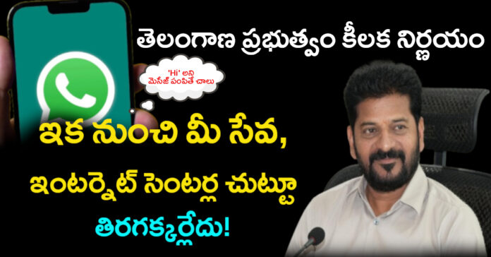 నవతెలంగాణ – హైదరాబాద్: తెలంగాణలో ప్రభుత్వ పాలనను ప్రజలకు మరింత చేరువ చేసే దిశగా రేవంత్ రెడ్డి సర్కార్ ఒక వినూత్న ప్రయోగానికి శ్రీకారం చుట్టింది. ప్రభుత్వ సేవలు, ధ్రువపత్రాల కోసం మీ-సేవ, ఇంటర్నెట్ కేంద్రాల చుట్టూ తిరిగే అవసరం లేకుండా, వాటన్నింటినీ అరచేతిలోని సెల్ఫోన్లోకి తీసుకొచ్చేందుకు ‘వాట్సాప్ చాట్బాట్’ విధానాన్ని ప్రారంభించింది. ఇందుకోసం ప్రత్యేకంగా 80969 58096 అనే వాట్సాప్ నంబర్ను అందుబాటులోకి తెచ్చింది. ఈ ఒక్క నంబర్తోనే రాష్ట్రంలోని దాదాపు అన్ని ప్రభుత్వ సేవలను పొందేలా ‘వన్ స్టాప్ షాప్’ తరహాలో దీనిని రూపొందించారు.
