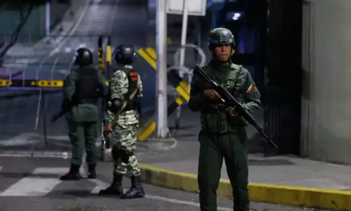 వెనిజులాలో మరోసారి ఉద్రిక్తత నెలకొంది. రాజధాని కారకాస్లోని అధ్యక్ష భవనం సమీపంలో కాల్పుల శబ్దాలు స్థానికులను భయాందోళనలకు గురిచేశాయి. స్థానిక కాలమాన ప్రకారం రాత్రి 8 గంటల సమయంలో దాదాపు 45 నిమిషాల పాటు తూటాల శబ్దాలు మార్మోగాయని స్థానికులు చెబుతున్నారు. అదే సమయంలో పలు డ్రోన్లు, విమానాల శబ్దాలు కూడా వినిపించాయని పేర్కొన్నారు. ఈ పరిణామం నేపథ్యంలో కొన్ని ప్రాంతాల్లో విద్యుత్ సరఫరాకు కూడా అంతరాయం కలిగినట్లు సమాచారం.గుర్తు తెలియని డ్రోన్లు అధ్యక్ష భవనం పరిసరాల్లో తిరుగుతున్నట్టుగా భద్రతా బలగాలు గుర్తించి అప్రమత్తమయ్యాని.. ఈ క్రమంలోనే గాల్లోకి కాల్పులు జరిపినట్లుగా వెనెజువెలా ప్రభుత్వ వర్గాలు చెబుతున్నాయి.