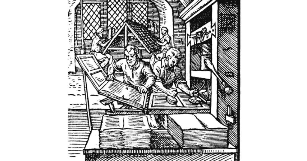 15వ శతాబ్దంలో ప్రపంచం, సాంకేతిక పరంగా ఒక వింత చూసింది. జర్మనీకి చెందిన జొహాన్నెస్ గుటెన్బర్గ్ 1440లో ఒక ముద్రణ యంత్రాన్ని తయారు చేశాడు. అది మేకు సాయంతో తిరుగుతూ వేసిన చిత్రమైనా రాసిన అక్షరాల కాగితమైనా అచ్చు తీస్తుంది. ఆనాటి వరకూ చేతిరాతతోనే ప్రతులు తీసి కళాకారులు చిత్రించి, అవి గ్రంథాలుగా తీసేవారు. అందువలన ఒక్కో గ్రంథానికి ఎంతో సమయం పట్టేది. 15వ శతాబ్దంలో ఈ ముద్రణ కళ వచ్చిన తర్వాత వేసిన చిత్రానికి రాసిన పుటలకు ముద్రణ యంత్రం ద్వారా ఎన్నో ప్రతులు తీయవచ్చు. అద్దంలోని ప్రతిబింబంలా తిరగతిప్పి, చెక్క పలక, రాగి పలకపై రాసి చిత్రించి, ఆ పలకపై ఇంక్ రాసి కాగితంపై సరిబొమ్మ అచ్చులు తీసేవారు. అందువలన గ్రంథాలు ఎన్నో తక్కువ సమయంలోనే వెలువడ మొదలెట్టాయి. ఈ ముద్రణ యంత్రంతో ఎన్నో గ్రంథాలు అచ్చువేయగల పద్ధతి యూరోప్ అంతా పాకింది. ఎన్నో వేల పుస్తకాలు అచ్చువేయబడ్డాయి.