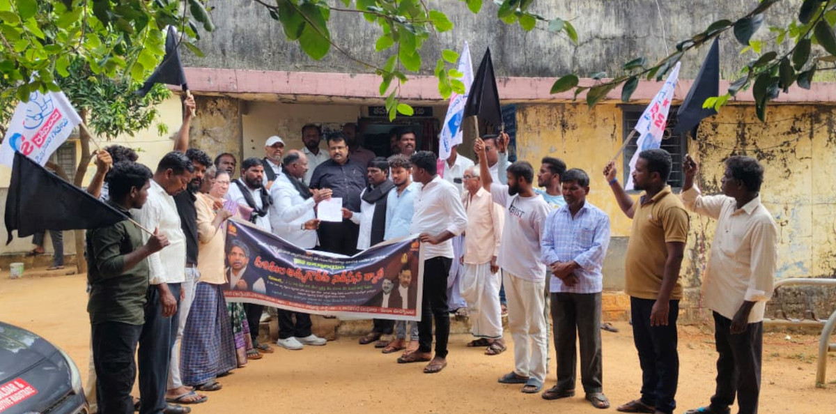 సుప్రీంకోర్టు చీఫ్ జస్టిస్ బీఆర్ గవాయి మీద దాడి చేసిన వ్యక్తిని వెంటనే అరెస్టు చేయాలని.. ఊరుకొండ తహసీల్దార్ యూసుఫ్ అలీకి వినతి పత్రం అందజేశారు. శుక్రవారం ఊరుకొండ మండల కేంద్రంలోని తహసీల్దార్ కార్యాలయం ముందు సుప్రీంకోర్టు చీఫ్ జస్టిస్ బీఆర్ గవాయి మీద దాడి చేసిన వ్యక్తిని వెంటనే అరెస్ట్ చేయాలని డిమాండ్ చేస్తూ నిరసన తెలిపారు. కార్యక్రమంలో ఎమ్మార్పీఎస్ అధ్యక్షులు దార రాధాకృష్ణ, జిల్లా ఇంచార్జ్ మద్దిలేటి మాదిగ, శేఖర్, కల్వకుర్తి మండల్ ఇన్చార్జ్ పోలే చంద్రయ్య,, మాజీ సర్పంచ్ కొమ్ము రాజయ్య,, భాస్కర్, మహేష్, నాగరాజు, పోలే లక్ష్మయ్య, ఉడుతల గణేష్ గౌడ్, బక్క నాగరాజు, కొట్ర కిరణ్, తదిపారులు పాల్గొన్నారు.