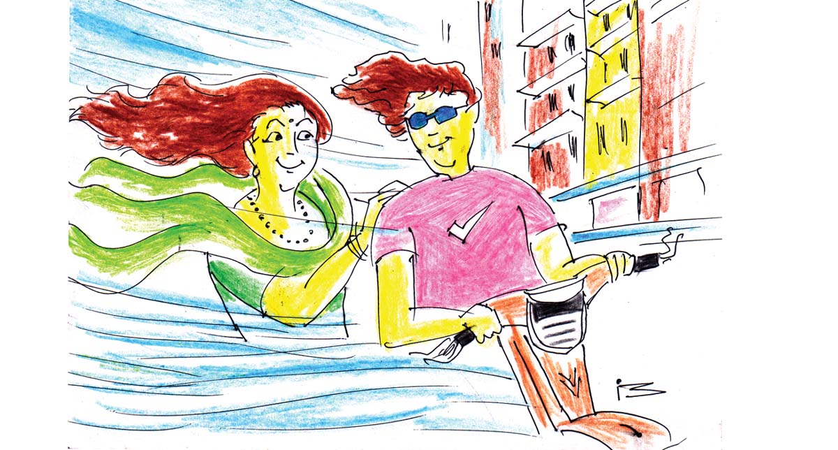 ‘హమ్మయ్య’ అనుకున్నాడు మయాంక్‌. గాలికి అంటుకుని వున్న బనియన్‌ ఫెళ్లున నవ్వింది. ‘విప్పరాదోరు ఏం చేస్తున్నావు?’ అన్న మాటలు వినపడ్డయి. ఆ మాటలు అన్నది ఎవరో అర్థం కాలేదు కానీ, తక్షణ కర్తవ్యం ఏమిటో అర్థమై, చొక్కా విప్పి, లుంగీ చుట్టుకుని, కిటికీ దగ్గర కూచుందామని ప్లాస్టిక్‌ కుర్చీని బర్రున లాగాడు. ‘ఒళ్లు కొవ్వెక్కిందా? అవతల వాళ్ల అవస్త అసలు పట్టించుకోవా?’ అన్న మాటలు వినపడ్డయి. ఆ మాటలు అన్నది ఎవరో అర్థం కాలేదు. కుర్చీ కింద ఎవరూ లేరు కదా అనుకుంటూ దాన్ని పైకెత్తి చూసి, ఈసారి నెమ్మదిగా కిందికి దించి దాంట్లో కూచున్నాడు. ఎప్పటిలా కాక కాస్త సున్నితంగా.