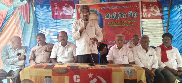 నవతెలంగాణ – బోనకల్ : ఆవుల సీతారాములు యుక్తవయసులో సీపీఐ(ఎం) జెండా చేతబట్టి మరణించే వరకు వదలని వీరుడు అని,ఖమ్మంలోనే వెలుగుమట్లలో పేదల గుడిసెలను కూల్చి పెద్దలకు కట్టబెట్టేందుకే పేదల గుడిసెలను కాంగ్రెస్ ప్రభుత్వం కూల్చిందని సీపీఐ(ఎం) రాష్ట్ర కార్యదర్శివర్గ సభ్యులు పోతినేని సుదర్శన్ రావు ఆరోపించారు. మండల పరిధిలోనే చొప్పకట్లపాలెం గ్రామంలో సీపీఐ(ఎం) సీనియర్ నాయకులు అమరజీవి ఆవుల సీతారాముల సమస్మరణ సభ సీపీఐ(ఎం) గ్రామ కమిటీ కన్వీనర్ చలమల అజయ్ కుమార్ అధ్యక్షతన గురువారం జరిగింది. తొలుత ఆవులు సీతారాముల చిత్రపటానికి పోతినేని సుదర్శన్ రావు, సీపీఐ(ఎం) జిల్లా కార్యదర్శి నున్నా నాగేశ్వరరావు, సీపీఐ(ఎం) జిల్లా సీనియర్ నాయకులు పొన్నం వెంకటేశ్వరరావు, చింతలచెరువు కోటేశ్వరరావు, డివిజన్ కార్యదర్శి మడిపల్లి గోపాలరావు, డివిజన్ కార్యదర్శి సభ్యులు పాపినేని రామ నరసయ్య మండల కార్యదర్శి కిలారు సురేష్ పూలమాలలు వేసి నివాళులర్పించారు. అనంతరం జరిగిన సంస్మరణ సభలో కష్ట జీవుల కోసం సీపీఐ(ఎం) మాత్రమే పనిచేస్తుందని నమ్మిన వ్యక్తి ఆవులు సీతారాములు అన్నారు. తనకు జ్ఞాపకం వచ్చిన దగ్గరనుంచి సీపీఐ(ఎం) జెండాను చేతబట్టి ఆ జెండాను  మరణించే వరకు విడవకుండా జీవించిన వ్యక్తి సీతారాములని, అటువంటి వ్యక్తిని ప్రతి ఒక్కరు ఆదర్శంగా తీసుకోవాలని సూచించారు. సీతారాములు మంచి కమ్యూనిస్టు అన్నారు. చదువుకోకపోయినా, సిద్ధాంతం తెలియకపోయినా పార్టీపై అసంచల విశ్వాసం ఉంచిన వ్యక్తి సీతారాములు అన్నారు. కమ్యూనిస్టులపై నిర్బంధాలు, కేసులు ఉంటాయి, అయినా అనేకమంది పేద ప్రజల హక్కుల కోసం పోరాడేదుకు ముందుకు వస్తున్నారన్నారు. కేంద్రంలో బిజెపి ప్రభుత్వం పార్లమెంటులో ప్రతిపక్ష పార్లమెంటు సభ్యులకు మాట్లాడే అవకాశం కూడా ఇవ్వడం లేదని ఆరోపించారు. పార్లమెంట్ స్పీకర్ తీరు ప్రజాస్వామ్యానికే మాయన మచ్చ అన్నారు. అదేవిధంగా తెలంగాణ రాష్ట్రంలో తెలంగాణ రాష్ట్ర స్పీకర్ పార్టీ పెరాయించిన ఎమ్మెల్యేలపై తీసుకున్న నిర్ణయం కూడా ప్రజాస్వామ్యానికే మాయని మచ్చగా మిగిలిపోతుందన్నారు. పార్లమెంటులో ప్రభుత్వ వ్యతిరేక నిర్ణయాలపై మాట్లాడేందుకు స్పీకర్ ప్రతిపక్ష ఎంపీలకు అవకాశం ఇవ్వకపోవడం కుట్రలో భాగమే అన్నారు. ఇరాన్ పై అమెరికా, ఇజ్రాయిల్ చేస్తున్న యుద్ధం ప్రభావం మన దేశంపై తీవ్రంగా పడుతుందన్నారు. కేంద్ర ప్రభుత్వం గ్యాస్ ధరలను పెంచిందన్నారు. ప్రధానమంత్రి నరేంద్ర మోడీ అమెరికా అధ్యక్షుడు డోనాల్డ్ ట్రంప్ కు పూర్తిగా లొంగిపోయాడని ఆరోపించారు. రష్యా నుంచి చమురు కొనుగోలుకు డోనాల్డ్ ట్రంప్ అనుమతి తీసుకోవలసిన పరిస్థితి నరేంద్ర మోడీకి పట్టిందని ఎద్దేవా చేశారు. ఖమ్మంలో వెలుగుమట్లలో పూరి గుడిసె