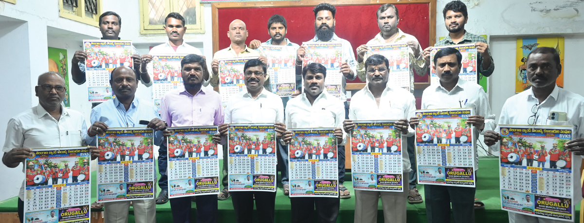 తెలంగాణ బ్యాండ్ వాయిద్య కళాకారుల సంఘం ఆధ్వర్యంలో ముద్రించిన 2026 క్యాలెండర్ను చేతి వత్తిదారుల సమన్వయ కమిటీ రాష్ట్ర కన్వీనర్ ఎంవీ రమణ, కో కన్వీనర్ పైళ్ల ఆశయ్య శనివారం సుందరయ్య విజ్ఞాన కేంద్రంలో ఆవిష్కరించారు. ఈ సందర్భంగా వారు మాట్లాడుతూ బ్యాండ్ కళాకారులకు ప్రభుత్వం ఐడెంటి కార్డులు, పింఛన్లు, అందించాలని డిమాండ్ చేశారు. 50 ఏండ్లకే ఫించన్ మంజూరు చేయడంతో పాటు రోడ్డు ప్రమాదంలో గాయపడిన, మరణించిన కుటుంబాలకు రూ.10 లక్షల ఎక్స్గ్రేషియా ఇవ్వాలని కోరారు. బడ్జెట్లో ప్రత్యేక నిధులు కేటాయించాలని ప్రభుత్వానికి విజ్ఞప్తి చేశారు.