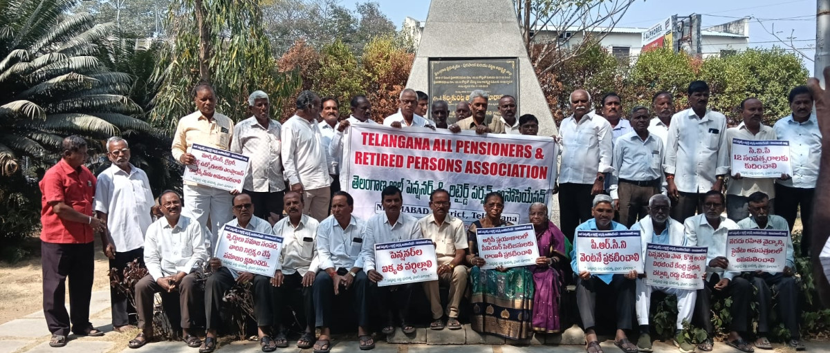 కేంద్ర ప్రభుత్వం పెన్షనర్లను రెండుగా విభజిస్తూ వ్యాలిడేషన్ ఆఫ్ పెన్షన్ చట్టాన్ని అమల్లోకి తెచ్చిందని దీని మూలంగా పాత పెన్షనర్లకు డిఏ గాని, పెన్షన్ రివిజన్ గాని జరగదని, పెరుగుతున్న ధరలు ఆకాశాన్నంటుతున్న ఈ సమయంలో పెన్షనర్లకు కేంద్ర ప్రభుత్వం ద్రోహం చేయటం తగదని గురువారం తెలంగాణ ఆల్ పెన్షనర్స్ అండ్ రిటైర్డ్ పర్సన్ అసోసియేషన్ నిజామాబాద్ ఆధ్వర్యంలో పాత కలెక్టరేట్ ధర్నా చౌక్ లో పెన్షనర్ల ధర్నా నిర్వహించారు. ఫిబ్రవరి 12 న జరిగిన దేశవ్యాప్త కార్మిక, ప్రజాసంఘాల సార్వత్రిక సమ్మెలో పెన్షనర్లు పాల్గొని కేంద్ర ప్రభుత్వానికి వ్యతిరేకంగా నినాదాలు చేశారు. సీనియర్ సిటిజనులకు రైల్వేలో ప్రయాణాల్లో రాయితీలు ఇవ్వాలని, ఈపీఎస్ పెన్షనర్లకు నెలకు ₹9000 పెన్షన్ గా నిర్ధారించాలని, ఆరోగ్య భద్రత కల్పించాలని , కంట్రిబ్యూటరీ పెన్షన్ విధానాన్ని రద్దు చేయాలని,తదితర డిమాండ్లతో వారు ధర్నా కార్యక్రమాన్ని నిర్వహించారు.