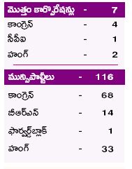68 మున్సిపాల్టీల్లో కాంగ్రెస్కు స్పష్టమైన ఆధిక్యం