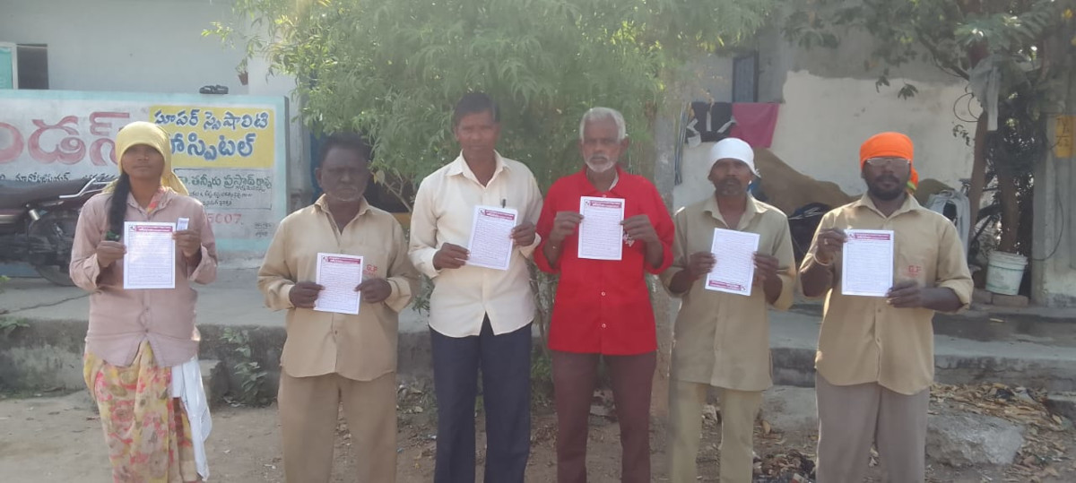 అక్టోబర్ 6న జిల్లా కలెక్టర్ కార్యాలయం వద్ద ధర్నా కార్యక్రమం విజయవంతం చేయాలని ఐఎఫ్టియు జిల్లా సహాయ కార్యదర్శి, తెలంగాణ ఆదర్శ గ్రామపంచాయతీ , మున్సిపల్ వర్కర్ యూనియన్, ఐఎఫ్టియు జిల్లా సహాయ కార్యదర్శి జే పి గంగాధర్ అన్నారు. శనివారండిచ్ పల్లి మండలంలోని సుద్దపల్లి గ్రామంలో గ్రామ పంచాయతీ వర్కర్స్ యూనియన్ ఐఎఫ్టియు అనుబంధం జీపీ కార్మికుల సమావేశం నిర్వహించారు. అంతకుముందు పోస్టర్లను అవిష్కరించారు. ఈ సందర్బంగా ఆయన మాట్లాడుతూ.. ఐఎఫ్టియు, తెలంగాణ ఆదర్శ గ్రామపంచాయతీ వర్కర్స్, మున్సిపల్ వర్కర్స్ యూనియన్ ఆధ్వర్యంలో ఈ నెల 6, 2025 అక్టోబర్ నిజామాబాద్ జిల్లా కలెక్టర్ కార్యాలయం వద్ద ధర్నా నిర్వహించ తలపెట్టామని అన్నారు. దీనికి జిల్లాలో ఉన్న గ్రామపంచాయతీ కార్మికులు వాటర్ మెన్, ఎలక్ట్రిషన్ ,అటెండర్, సిబ్బంది ధర్నాకు తరలిరావాలన్నారు. అన్ని రంగాలలో కార్మికులు, వివిధ సెక్టార్లలో ఉన్న నాన్ టీచింగ్ కాంట్రాక్టర్, స్కీం వర్కర్స్ అన్ని రంగాలను పర్మినెంట్ చేయాలని, సమాన పనికి సమాన వేతనం ఇవ్వాలని సుప్రీంకోర్టు 2016 తీర్పు ఇవ్వడం జరిగిందన్నారు. బాకీ ఉన్న వేతనాలు, పిఎఫ్ ,ఈఎస్ఐ, పర్మినెంట్ రెగ్యులర్ చేయాలని ఐ ఎఫ్ టి యు కేంద్ర రాష్ట్ర ప్రభుత్వాలను డిమాండ్ చేశారు. ఈ సమావేశంలో నర్సయ్య ,అంజన్న, సాయిలు, పోతన, లక్ష్మి తదితరులు పాల్గొన్నారు.