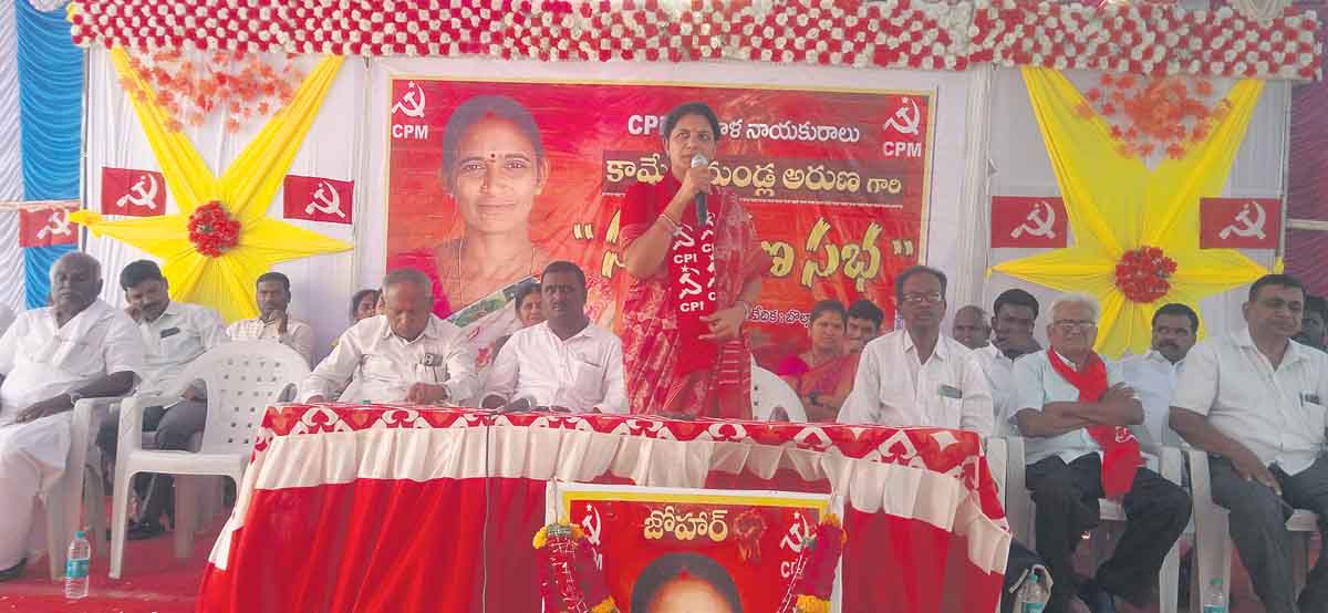 భర్త కృష్ణయ్యకు అండగా ఉంటూ ఉద్యమానికి ఊతం ఇచ్చిన మహిళ నాయకురాలని కొనియాడారు. దేశంలో సంపద కొంతమంది చేతుల్లోనే ఉందని భూములు భూస్వాముల చేతిలో ఉన్నాయని అన్నారు. దోపిడీ లేని సమాజం కోసం, అసమానతలు లేని సమాజం కోసం వర్గ పోరాటాలు నిర్వహిస్తేనే అరుణకు ఇచ్చే ఘనమైన నివాళి అని అన్నారు. ఈ కార్యక్రమంలో పార్టీ నాయకులు నాయకులు రాజు, నరసింహ, రాష్ట్ర సోషల్ మీడియా కన్వీనర్ శంకర్, సుందరయ్య విజ్ఞాన కేంద్రం కృష్ణ ప్రసాద్, తదితరులు పాల్గొన్నారు