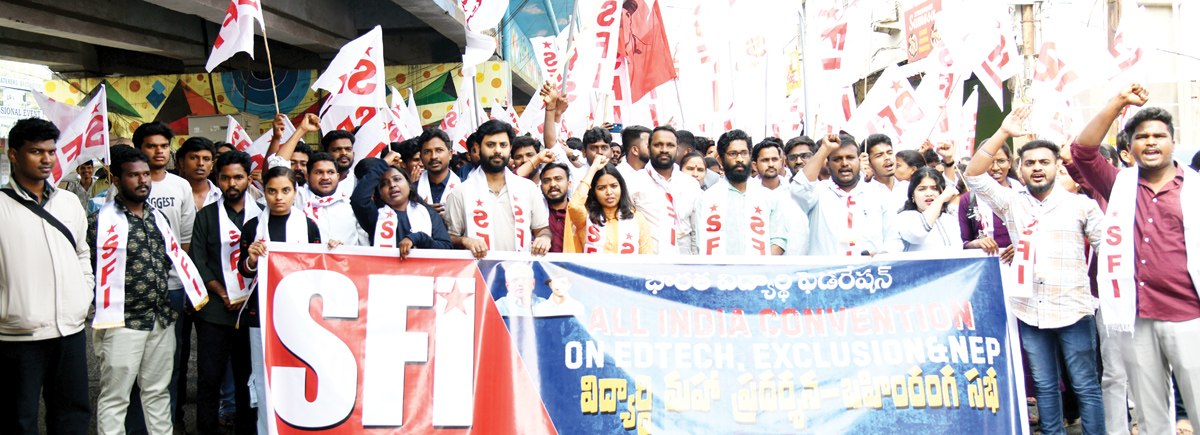 దేశ విద్యారంగంలో జాతీయ నూతన విద్యా విధానం-2020 అమలు చేయడం ద్వారా విద్యారంగం అగాధంలోకి వెళ్తుందని వక్తలు అభిప్రాయపడ్డారు. కేంద్రంలోని బీజేపీ ప్రభుత్వం నూతన విద్యావిధానం పేరుతో విద్యలో మతోన్మాదాన్ని అమలు చేస్తోందని ఆగ్రహం వ్యక్తం చేశారు. ఆర్ఎస్ఎస్ ఎజెండాను భాగం చేసి అసమానతలు పెంచుతోందన్నారు. ఎస్ఎఫ్ఐ జాతీయ కన్వెన్షన్ సందర్భంగా హైదరాబాద్లోని నారాయణ గూడ చౌరస్తా నుంచి సుందరయ్య విజ్ఞాన కేంద్రం వరకు భారీ ర్యాలీ, అనంతరం ఎస్ఎఫ్ఐ రాష్ట్ర అధ్యక్షుడు రజినీ కాంత్ అధ్యక్షతన బహిరంగ సభ నిర్వహించారు.