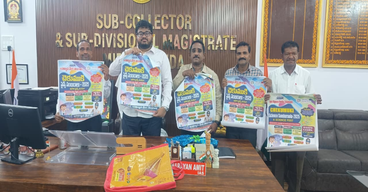 విద్యార్థి దశనుండే విద్యార్థులలో శాస్త్రీయ దృక్పథాన్ని పెంపొందించాలన్న లక్ష్యంతో ప్రతి సంవత్సరం చెకుముకి సైన్స్ సంబురాలను నిర్వహించడం అభినందనీయమని సబ్ కలెక్టర్ నారాయణ అమిత్ తెలిపారు. ఆదివారం చెకుముకి సైన్స్ సంబరాలు పోస్టర్ను ఆవిష్కరించారు. ఈ సందర్భంగా ఆయన మాట్లాడుతూ మూఢనమ్మకాల, ఆరోగ్య ఆహారపు అలవాట్ల అవగాహన కార్యక్రమాలు ఏర్పాటు చేయలన్నారు. ప్రభుత్వ నిబంధనల మేరకు అవసరం వున్నచోట సహాయ సహకారాలు అందజేస్తామని తెలిపారు. రాష్ట్ర కమిటీ సభ్యులు కోలా శ్రీనివాస్ మాట్లాడుతూ విద్యార్థులలో పాఠశాల స్థాయినుండే శాస్త్రీయ వైఖరులు పెంపోందించే విధంగా 8,9,10 తరగతుల విద్యార్థులకు చెకుముకి సంబురాలు పేరుమీద నవంబర్ 7 న పాఠశాల స్థాయి, నవంబర్ 21 న మండల స్థాయి, నవంబర్ 28 న జిల్లా స్థాయి, డిసెంబర్ 12,13,14 తేదీలలో కరీంనగర్ లో రాష్ట్ర స్థాయి పరీక్షలు తెలంగాణ సమగ్ర శిక్షా విభాగం సహకారం తో నిర్వహిస్తున్నామన్నారు. ఈ పరీక్షలకు పాఠశాల యాజమాన్యాలు, ప్రధానోపాధ్యాయులు, ప్రిన్సిపాల్స్, తల్లిదండ్రులు ప్రోత్సహించాలని కోరారు. ఈ కార్యక్రమం లో ఆ వేదిక జిల్లా అధ్యక్షులు గుత్తికొండ సుదర్శన్ రెడ్డి, జిల్లా ఉపాధ్యక్షులు కట్టా మధుసూదన్, జిల్లా కోశాధికారి ఉస్మాన్ అలీ పాల్గొన్నారు.