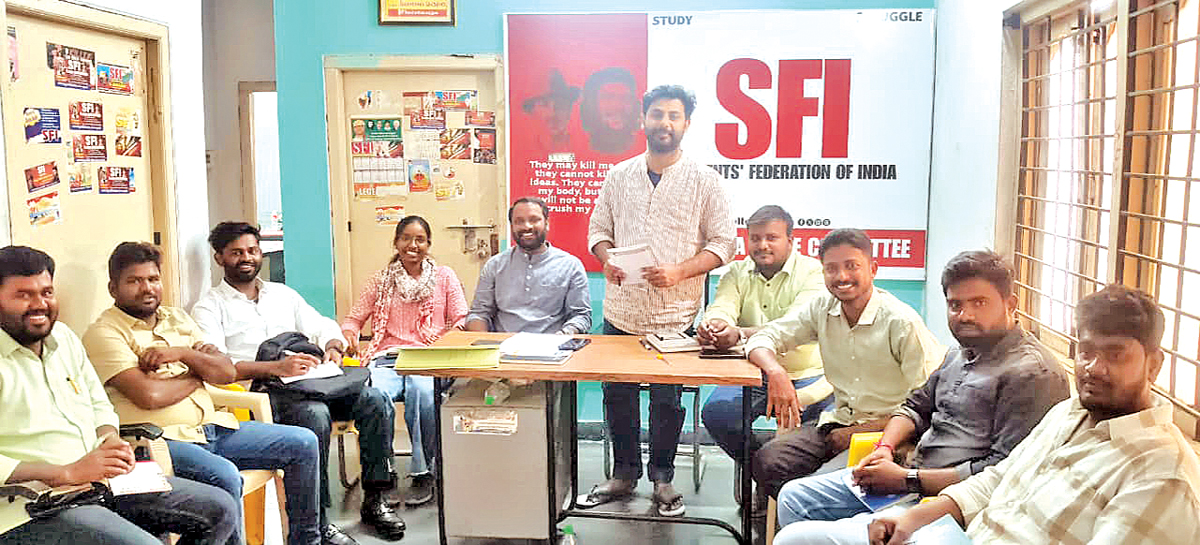 దేశంలోని ఉన్నత విద్యా సంస్థల్లో యూజీసీ సమానత్వ నిబంధనలను తక్షణమే అమలు చేయాలని, విశ్వవిద్యాలయాల్లో పెరుగుతున్న కుల వివక్షకు వ్యతిరేకంగా రాజీలేని పోరాటం చేయాలని ఎస్‌ఎఫ్‌ఐ జాతీయ కార్యదర్శి శ్రీజన్‌ భట్టాచార్య పిలుపునిచ్చారు. ఆదివారం హైదరాబాద్‌లోని ఎస్‌ఎఫ్‌ఐ రాష్ట్ర కార్యాలయంలో ఆ సంఘం రాష్ట్ర అధ్యక్షులు ఎస్‌.రజినీకాంత్‌ అధ్యక్షతన జరిగిన రాష్ట్ర కార్యదర్శివర్గ సమావేశానికి హాజరయ్యారు. ఈ సందర్భంగా శ్రీజన్‌ భట్టాచార్య మాట్లాడుతూ.. బీజేపీ అధికారంలోకి వచ్చిన తర్వాత విశ్వవిద్యాలయాల్లో కుల వివక్ష తీవ్రరూపం దాల్చిందన్నారు. దీనివల్ల విద్యార్థులు మానసిక క్షోభకు గురవుతూ చదువులకు దూరమవుతున్నారని ఆవేదన వ్యక్తం చేశారు.
