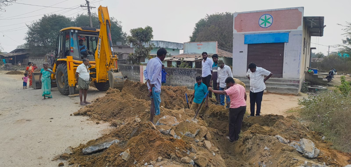 ప్రజలు ఇబ్బంది పడవద్దు అనే ఉద్దేశంతో బావి నుండి నూతన పైపులైను ట్యాంక్ వరకు వేసి ట్యాంకు నీరు ఎక్కించి ర్యాంక్ నుండి గ్రామంలోని అన్ని వీధిలోకుండా ప్రతి ఇంటికి నీటిని అందిస్తున్నామని అన్నారు. గ్రామంలోని ప్రజలు నీటి కోసం కొన్ని రోజుల నుండి ఇబ్బంది పడుతున్నారని కనీసం బట్టలు పిండుకోవడానికి ఇండ్లలోని పాత్రలు కూడా కడుక్కోవడానికి మరియు పశువులకు త్రాగడానికి నీటి వసతి లేక అనేక ఇబ్బందులు పడుతున్న క్రమంలో వెంటనే గ్రామపంచాయతీ సిబ్బంది మరియు అదనపు వ్యక్తులను తీసుకొని జెసిబి సహాయంతో కాలువ తీసి అందులో పైపులు వేసి నీటిని అందించే దిశగా ప్రయాణిస్తున్నామని అన్నారు. ఈ కార్యక్రమంలో పంచాయతీ కార్యదర్శి మురళి కరోబార్ బండారి రాములు రఫీ శ్రీశైలం సిబ్బంది పాల్గొన్నారు.