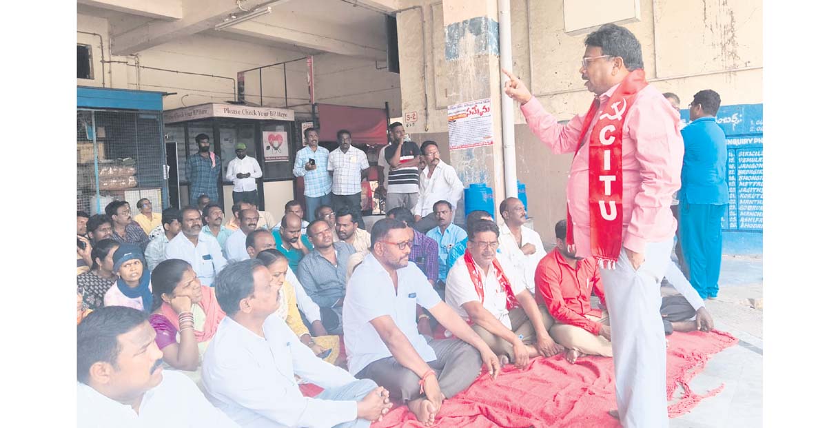అద్దె బస్సుల ముసుగులో సంస్థను ప్రయివేటు వ్యక్తులకు కట్టబెట్టడంలో భాగంగా జరుగుతున్న ఎలక్ట్రిసిటీ బస్సులను ప్రయివేటు వ్యక్తుల ద్వారా కొనుగోలు చేసి నడపడం మానుకోవాలన్నారు. ప్రభుత్వమే నేరుగా ఎలక్ట్రిక్ బస్సులను కొనుగోలు చేసి, వాటిని సంపూర్ణంగా ఆర్టీసీ సంస్థకే అప్పగించాలన్నారు. డ్రైవర్, కండక్టర్ నియామకాలను వెంటనే చేపట్టి కార్మికులపై అదనపు పని భారాన్ని తగ్గించాలన్నారు. గుర్తింపు సంఘం ఎన్నికలను జరపకపోవడం అంటే వారి హక్కులను కాలరాస్తూ, కార్మికుల గొంతు నొక్కడమే అని విమర్శించారు. ఇది కార్మికవర్గం సాధించుకున్న చారిత్రక హక్కులపై దాడి అని.. తక్షణమే గుర్తింపు సంఘం ఎన్నికలు నిర్వహించాలని డిమాండ్ చేశారు. 39 వేల మంది కార్మికులు రోడ్డున పడేలా రాష్ట్ర ప్రభుత్వం వ్యవహరిస్తోందన్నారు. తక్షణమే ప్రయాణికులు, ఆర్టీసీ కార్మికుల ఇబ్బందులను దృష్టిలో ఉంచుకుని ప్రభుత్వం సమ్మె విరమింపజేయాలని డిమాండ్ చేశారు. ఈ కార్యక్రమంలో సీఐటీయు జిల్లా కార్యదర్శి కాముని గోపాలస్వామి, జిల్లా సహాయ కార్యదర్శి చొప్పరి రవికుమార్, వ్యవసాయ కార్మిక సంఘం జిల్లా కార్యదర్శి రాళ్లబండి శశిధర్, ఐద్వా జిల్లా సహాయ కార్యదర్శి జాలిగాపు శిరీష, జేఏసీ నాయకులు రాజు, మహేశ్వరరెడ్డి, రాజయ్య పాల్గొన్నారు.