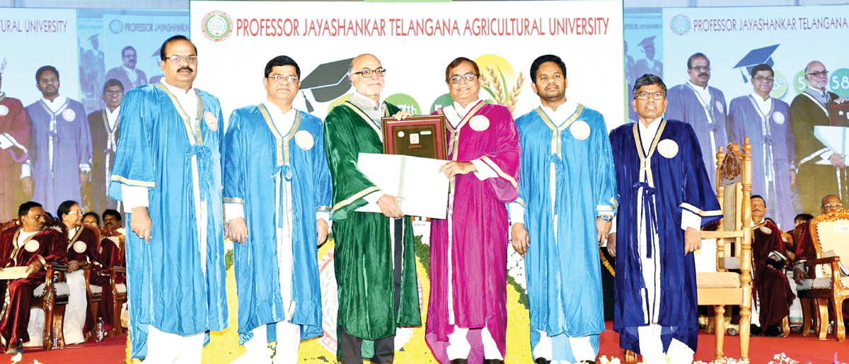 1960లో ఆహార కొరత ఎదుర్కొన్న భారతదేశం హరిత విప్లవంతో నేడు ఆహార ఉత్పత్తులను ఎగుమతి చేసే స్థాయికి ఎదిగిందని టాటా-కార్నెల్‌ ఇన్స్టిట్యూట్‌ ఆఫ్‌ అగ్రికల్చర్‌ అండ్‌ న్యూట్రిషన్‌ డైరెక్టర్‌, అంతర్జాతీయ వ్యవసాయ నిపుణులు ప్రభు ఎల్‌ పింగళి అన్నారు. పప్పుధాన్యాలు, తృణధాన్యాల ఉత్పత్తిలో వెనుకబడి ఉన్నామన్నారు. దాంతో ప్రజలలో పోష్టికాహార లోపం ఉందన్నారు. సోమవారం ప్రొఫెసర్‌ జయశంకర్‌ తెలంగాణ వ్యవసాయ విశ్వవిద్యాలయ స్నాతకోత్సవం రంగారెడ్డి జిల్లా రాజేంద్రనగర్‌లోని విశ్వవిద్యాలయం క్రీడా మైదానంలో జరిగింది. వీసీ ప్రొఫెసర్‌ అల్దాస్‌ జానయ్య అధ్యక్షతన జరిగిన ఈ కార్యక్రమంలో డాక్టర్‌ ప్రభు పింగళికి గౌరవ డాక్టరేట్‌ ప్రదానం చేశారు.