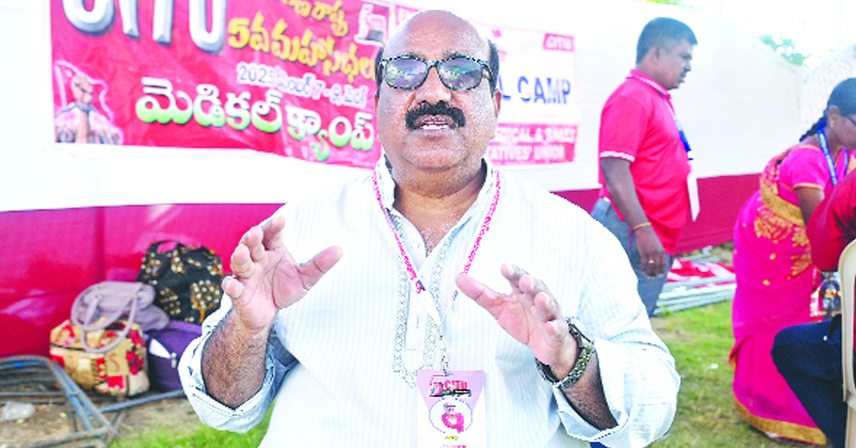 కొందరికే సంపద.. మరెందరికో ఆకలి, దరిద్రం. ఇది భారత ముఖచిత్రం. ఈ చిత్రానికి మోడీ ప్రభుత్వం మతం ముసుగు తగిలించి, కులం కుళ్లును సెలేన్‌గా ఎక్కించి, భావోద్వేగాలతో చిచ్చు పెట్టి..పబ్బం గడుపుతున్నది. రక్తం రుచిమరిగిన మృగంలా పేదల కష్టాన్ని దోచుకునేందుకు అలవాటు పడ్డ బీజేపీ సర్కార్‌.. కార్మికులు పోరాడి సాధించుకున్న 29 కార్మిక చట్టాలను రద్దు చేసింది. వారి మెడకు ఉరేసింది. మహాత్మా గాంధీ ఉపాధి హామీ చట్టాన్ని రద్దు చేసి పేదల గుండెలపై గునపం దింపింది. విద్యుత్‌ సంస్కరణ చట్టం, విత్తన బిల్లు ఇత్యాతి ప్రజావ్యతిరేక విధానాలతో ముచ్చటగా మూడో సారి అధికారంలోకి వచ్చిన మోడీ ప్రభుత్వం దూకుడు పెంచింది. ఈ సమయంలో ఈ నెల 31నుంచి 2026 జనవరి 4 వరకు సీఐటీయూ అఖిల భారత 18వ మహాసభలు ఆంధ్రప్రదేశ్‌లోని విశాఖపట్నంలో జరగనున్నాయి. ఈ నేపథ్యంలో సీఐటీయూ అఖిల భారత కోశాధికారి ఎం సాయిబాబు నవతెలంగాణ ప్రతినిధి ఎస్‌ వెంకన్నతో ముఖాముఖి..