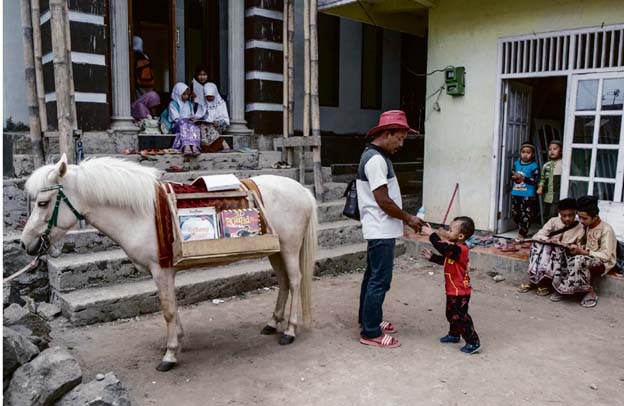 సాధారణంగా గ్రంథాలయం అంటే నాలుగు గోడలు, వరుసగా పేర్చిన పుస్తకాల అల్మారాలు, నిశ్శబ్ద వాతావరణం మన కళ్ళ ముందు మెదులుతాయి. కానీ, ఇండోనేషియాలోని సెంట్రల్‌ జావా ప్రాంతంలో ఒక వింతైన, అందమైన గ్రంథాలయం కనిపిస్తుంది. అది నడుస్తుంది, శబ్దం చేస్తుంది, పిల్లల దగ్గరకు వెతుక్కుంటూ వెళ్తుంది. అదే ‘గుర్రం గ్రంథాలయం’. రిద్వాన్‌ రూరి సురూరి, అతని ప్రియమైన గుర్రం లూనా కలిసి సాగిస్తున్న ఈ ప్రయాణం కేవలం పుస్తకాల పంపిణీ మాత్రమే కాదు, అక్షరాస్యత వైపు వేస్తున్న ఒక బలమైన అడుగు.