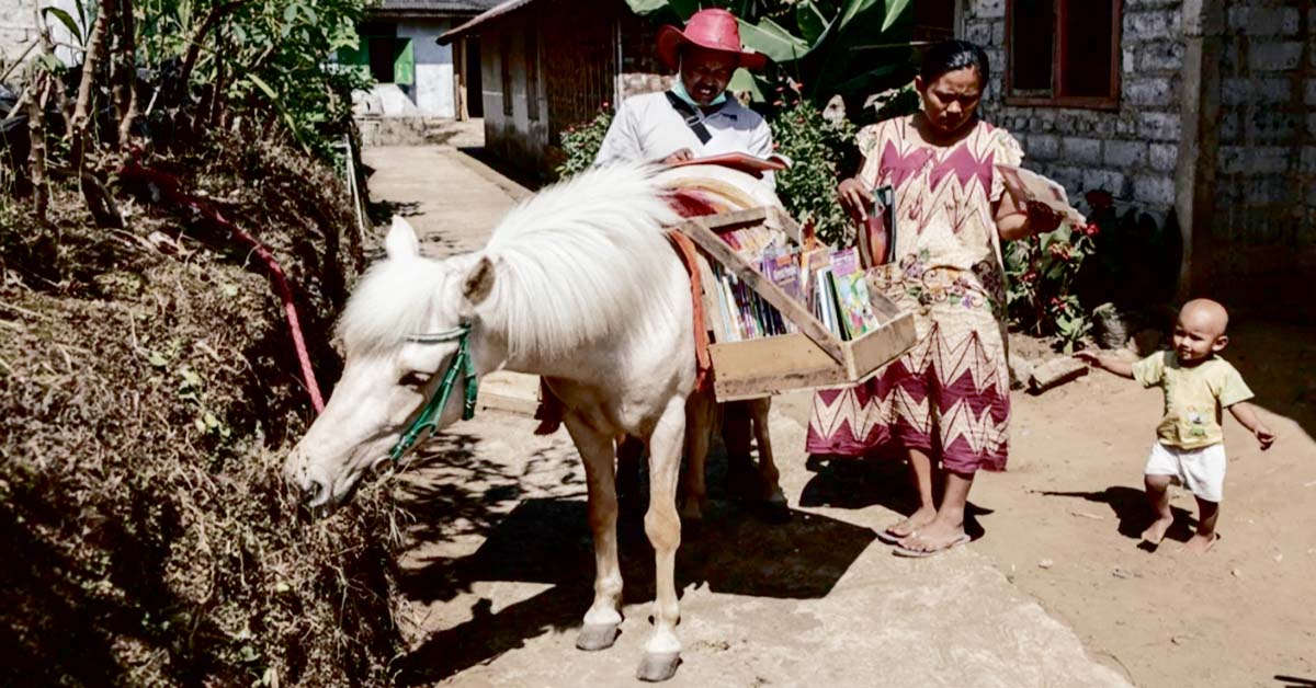 సాధారణంగా గ్రంథాలయం అంటే నాలుగు గోడలు, వరుసగా పేర్చిన పుస్తకాల అల్మారాలు, నిశ్శబ్ద వాతావరణం మన కళ్ళ ముందు మెదులుతాయి. కానీ, ఇండోనేషియాలోని సెంట్రల్‌ జావా ప్రాంతంలో ఒక వింతైన, అందమైన గ్రంథాలయం కనిపిస్తుంది. అది నడుస్తుంది, శబ్దం చేస్తుంది, పిల్లల దగ్గరకు వెతుక్కుంటూ వెళ్తుంది. అదే ‘గుర్రం గ్రంథాలయం’. రిద్వాన్‌ రూరి సురూరి, అతని ప్రియమైన గుర్రం లూనా కలిసి సాగిస్తున్న ఈ ప్రయాణం కేవలం పుస్తకాల పంపిణీ మాత్రమే కాదు, అక్షరాస్యత వైపు వేస్తున్న ఒక బలమైన అడుగు.