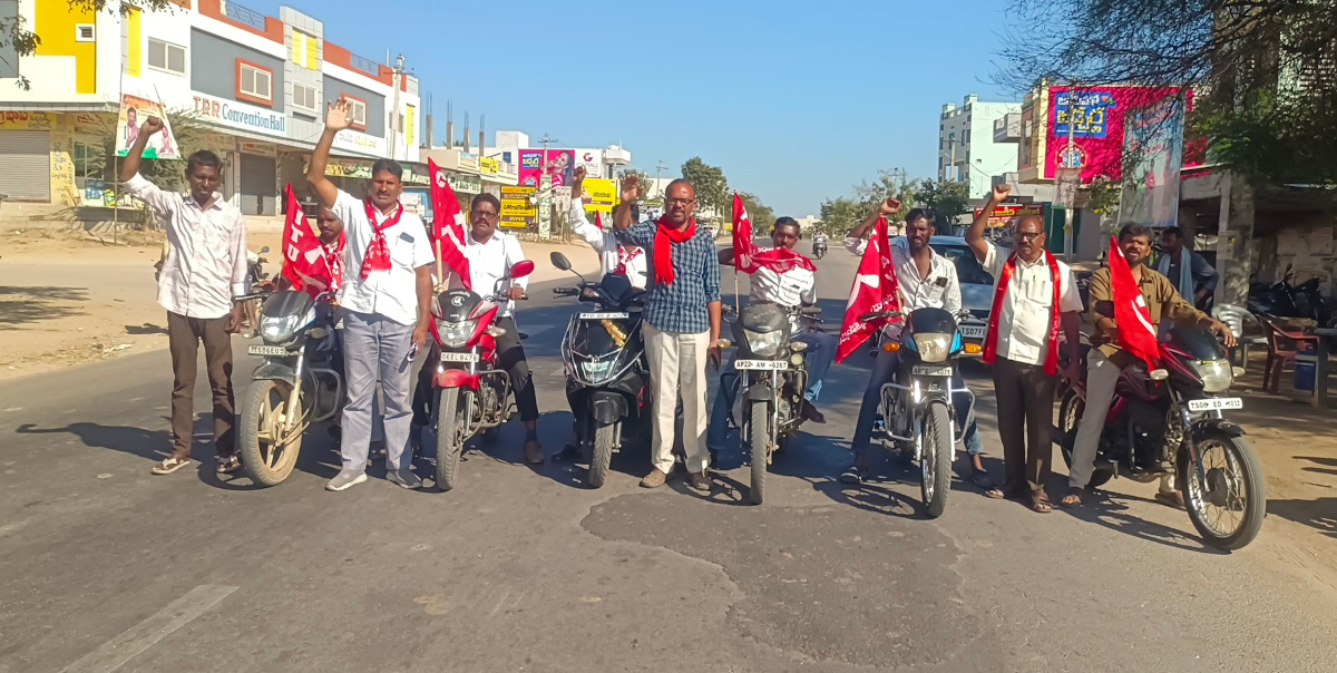 కేంద్ర ప్రభుత్వం తీసుకొచ్చిన రామ్ జి చట్టాన్ని రద్దు చేయాలని, రాష్ట్ర కమిటీ పిలుపు మేరకు ఆదివారం మండలంలోని వాడియాల్, మిడ్జిల్, బోయినపల్లి, మున్నా నూర్, తదితర గ్రామాలలో సిఐటియు, వ్యవసాయ కార్మిక సంఘం, రైతు సంఘం ఆధ్వర్యంలో బైక్ ర్యాలీ నిర్వహించారు. ఈ సందర్భంగా సిఐటియు జిల్లా అధ్యక్షులు ఎం దీప్లా నాయక్, వ్యవసాయ కార్మిక సంఘం జిల్లా అధ్యక్షులు పి జగన్, సిఐటియు జిల్లా సహాయ కార్యదర్శి తెలుగు సత్తయ్య, మాట్లాడారు. 19న జిల్లా కేంద్రంలో నిర్వహిస్తున్న ప్రదర్శనలు జయప్రదం చేయడానికి జిల్లాాలోనీ అన్ని గ్రామాలలో ప్రజలను చైతన్యం చేయడానికి బైక్ ర్యాలీ నిర్వహిస్తున్నామని వారు చెప్పారు.