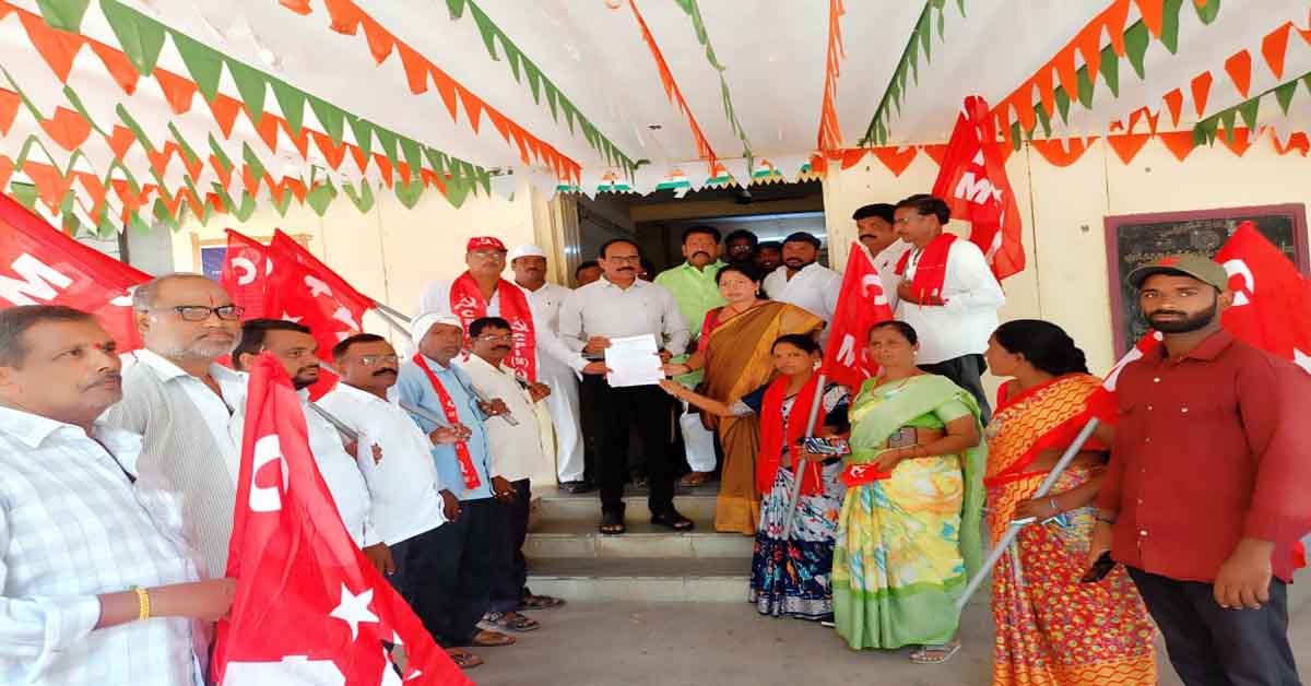 నవతెలంగాణ-భువనగిరి: 700 సర్వే నెంబర్ భూమిని చదును చేసి ప్రజలకు కేటాయించాలని సీపీఐ(ఎం) రాష్ట్ర కమిటీ సభ్యురాలు బట్టుపల్లి అనురాధ డిమాండ్ చేశారు. మంగళవారం ఇళ్ల స్థలాలు కేటాయించాలని కోర్టు సీపీఐ(ఎం) ఆధ్వర్యంలో ధర్నా నిర్వహించారు అనంతరం భువనగిరి ఆర్డీవో కృష్ణారెడ్డికి వినతి పత్రం అందజేశారు. ఈ సందర్భంగా రాష్ట్ర కమిటీ సభ్యురాలు బట్టుపల్లి అనురాధ మాట్లాడుతూ సిపిఎం పోరుబాట సందర్భంగా పట్టణంలో ప్రతి ఇంటికి తిరిగి ప్రజా సమస్యలను అధ్యయనం చేయడం జరిగిందన్నారు. ప్రజలకు సంబంధించిన వ్యక్తిగత సమస్యలు అదేవిధంగా మౌలిక సమస్యలపై సీపీఐ(ఎం) ఆధ్వర్యంలో సమస్యలపై అధ్యయనం చేయడం జరిగిందన్నారు. ఈ వస్తున్న పరిష్కారాన్ని కోసం ఆందోళన కార్యక్రమం చేపట్టామన్నారు. పట్టణంలోని 700 సర్వే నెంబర్లు పట్టాలి ఇచ్చి సంవత్సరాలు గడుస్తున్న అనేకమంది పేదలు ఇండ్లు లేక అద్దె ఇళ్లలో నివాసం ఉంటున్నారన్నారు. చాలీచాలని ఇంటిలో సమస్యలతో జీవనం సాగిస్తున్నారని అన్నారు. రాష్ట్ర ప్రభుత్వం గత శాసనసభ ఎన్నికలకు ముందు అర్హులైన పేదలందరికీ ఇండ్లు ఇండ్ల స్థలాలు ఇస్తామని హామీ ఇచ్చిందని వాటిని నెరవేర్చడంలో ప్రభుత్వ యంత్రాంగం విఫలమైందని వెంటనే అర్హులైన పేదలందరికీ ఇల్లు ఇళ్ల స్థలాలు ఇవ్వాలని ఆమె డిమాండ్ చేశారు. అనేక సంవత్సరాలుగా పెన్షన్లు లేకపోవడం వలన వృద్ధాప్య, వితంతు, ఒంటరి మహిళ అనేక అవస్థలు పడుతున్నారని వెంటనే అర్హత కలిగిన పేదలందరికీ పెన్షన్లు మంజూరు చేయాలని ఆయన డిమాండ్ చేశారు.