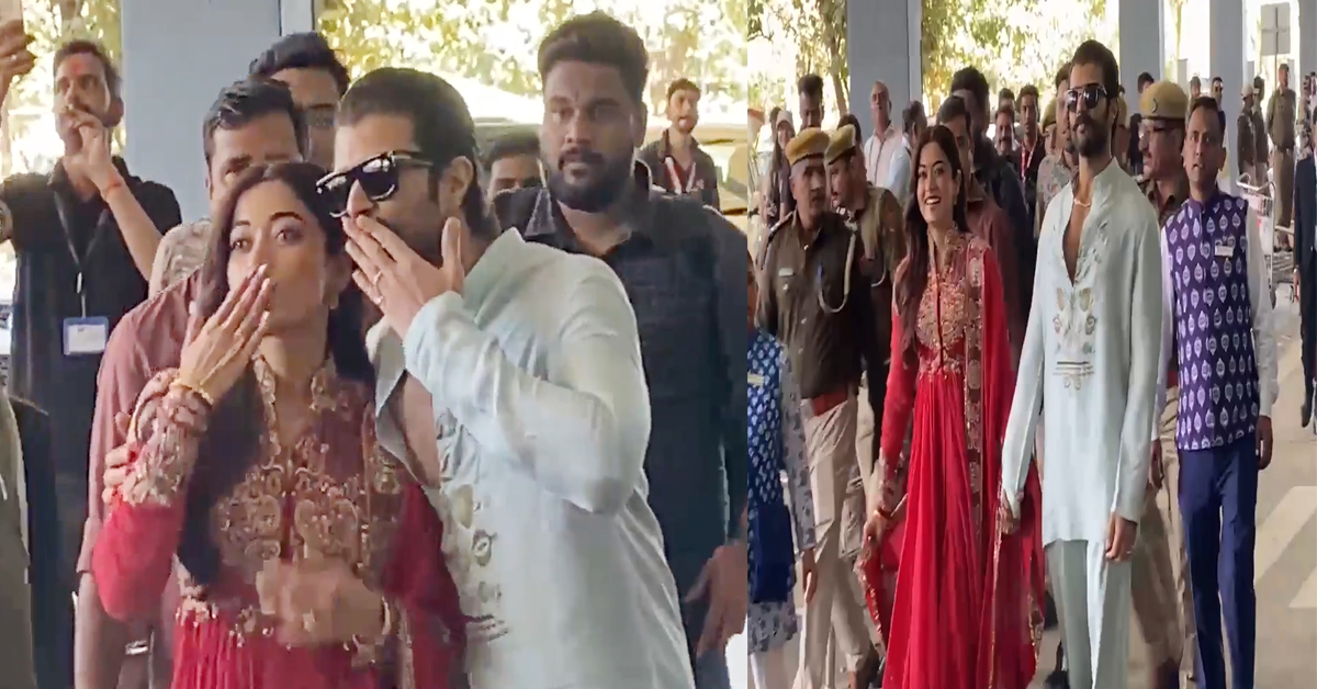 నవతెలంగాణ-హైదరాబాద్: ప్రముఖ నటినటులు విజయ్ దేవరకొండ, రష్మిక మందన్న గురువారం ఉదయపూర్ వేదికగా ఒకటైన విషయం తెలిసిందే. ఇరు కుటుంబాల మధ్య అత్యంత వైభవంగా ఇరువురు దాంపత్య జీవితంలోకి ప్రవేశించారు. పెండ్లి అయిన తర్వాత చూడచక్కని జంట మొదటి సారి పబ్లిక్ ముందుకు వచ్చారు. శుక్రవారం ఉదయ్పూర్ ఎయిర్ట్ పోర్టు ప్రాంగణంలో ఇరువురు తమ అభిమానులను ఉద్దేశించి ముచ్చటించారు. రష్మిక ఎరుపు రంగు దుస్తులు ధరించగా, దేవరకొండ సన్ గ్లాసెస్తో జతకట్టిన కుర్తా పైజామాను ధరించారు. దీంతో తమ ఆరాధ్య జంటను చూసి అభిమానులు కేరింతలతో అభివాదం తెలిపారు. వీరోష్ వీరోష్ అంటూ ఆనందంతో కేరింతలు కొట్టారు. తమ అభిమాన జంటకు శుభాకాంక్షలు తెలియజేస్తూ ఆనందం వ్యక్తం చేశారు. స్పందించిన కొత్తజంట.. ఫ్లయింగ్ కిస్లతో తమ అభిమానులకు బదులిచ్చారు. అదే విధంగా వచ్చే నెల 4న హైదరాబాద్లోని తాజ్ కృష్ణ హోటల్ లో రిసెప్షన్ జరగనుంది.