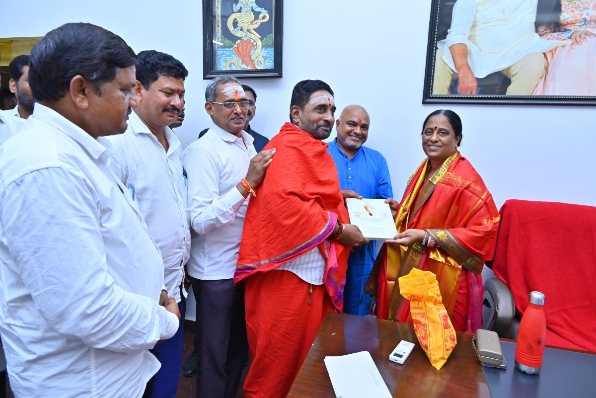 దేవాదాయ శాఖలో గ్రేడ్ 1, గ్రేడ్ 2, గ్రేడ్ 3 కార్య నిర్వహణ అధికారుల నియామకాన్ని ప్రభుత్వం వెంటనే భర్తీ చేసేందుకు చర్యలు చేపట్టాలని కోరారు. కార్యనిర్వణ అధికారుల పోస్టులు భర్తీ చేయడంతో ప్రభుత్వానికి ఎలాంటి ఆర్థిక భారం పడబోదని తెలిపారు. ఈవో పోస్టుల భర్తీకి మంత్రివర్గం చర్యలు చేపట్టి ఆమోదించాలని కోరారు. రాష్ట్రంలోని ఆలయాలకు వేలకోట్ల విలువచేసే భూములు ఉన్నాయని, రాష్ట్రంలో దేవాదాయ శాఖ పరిధిలో ఉన్న భూములన్ని అన్యాక్రాంతమవుతున్నాయని వివరించారు. దేవాదాయ శాఖ భూములను పరిరక్షించేందుకు ప్రభుత్వం దృష్టి పెట్టాలని మంత్రిని కోరారు. స్పందించిన మంత్రి సురేఖ మాట్లాడుతూ ఈవో పోస్టుల భర్తీతోపాటు భూములను పరిరక్షించేందుకు త్వరలో జరగబోయే మంత్రివర్గంలో చర్చిస్తామని హామీ ఇచ్చారని తెలిపారు. మంత్రి హామీ ఇవ్వడంతో అర్చక ఉద్యోగ జేఏసీ నాయకులు మంత్రికి కృతజ్ఞతలు తెలిపారు. ఈ కార్యక్రమంలో అర్చక, ఉద్యోగ జేఏసీ రాష్ట్ర ఉపాధ్యక్షులు తక్కర్సు సత్యం ,శ్యాం కుమార్, జైపాల్ రెడ్డి,వెంకయ్య, ఓమ్ ప్రకాష్ లు పాల్గొన్నారు.