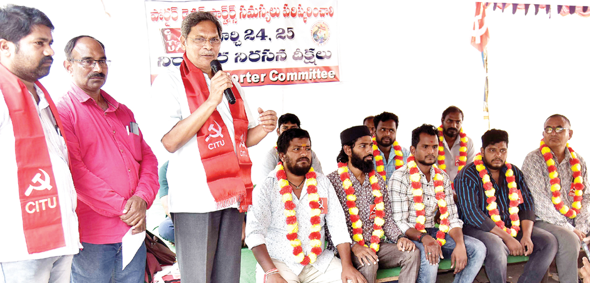 పోర్టర్ డ్రైవర్లు సంబంధిత పనిలో భాగస్వాములా? బానిసలా? అని సీఐటీయూ రాష్ట్ర ఉపాధ్యక్షులు ఎస్ వీరయ్య ప్రశ్నించారు. పోర్టర్ ఆన్లైన్ బిజినెస్ యాప్కి డ్రైవర్ పార్టనర్స్ పేరుతో అటాచ్ అయిన డ్రైవర్ల సమస్యల పరిష్కారానికి ఆ మేనేజ్మెంట్ పూనుకోవాలని డిమాండ్ చేశారు. మంగళవారం హైదరాబాద్లోని ధర్నా చౌక్లో ఏఐఆర్టీడబ్ల్యూఎఫ్(సీఐటీయూ) పోర్టర్ కమిటీ ఆధ్వర్యంలో చేపట్టిన రెండురోజుల రిలే నిరాహార దీక్షలను ఆయన ప్రారంభించారు. ఈ సందర్భంగా ఆ సంఘం వర్కింగ్ ప్రెసిడెంట్ కె అజరుబాబు అధ్యక్షతన నిర్వహించిన సభలో వీరయ్య మాట్లాడుతూ గిగ్ వర్కర్ల కోసం రాష్ట్ర ప్రభుత్వం బిల్లు పెడుతున్నట్టు ప్రచారం చేసుకుంటుందనీ, కానీ..ఈ బిల్లును రూపొందించే ముందు కనీసం కార్మిక సంఘాలతో చర్చించకుండా ఏకపక్షంగా వ్యవహరించటమేంటని ప్రశ్నించారు. గిగ్ వర్కర్లను భాగస్వాములంటూ ముద్దు పేర్లతో పిలవటం విడ్డూరంగా ఉందన్నారు. డ్రైవర్ల జుట్టు వారి చేతుల్లో పెట్టుకుని, ఆదాయం వారి చేతుల్లోనే పెట్టుకుని డ్రైవర్లను తోలుబొమ్మలుగా ఆటాడిస్తున్నారని ఆందోళన వ్యక్తం చేశారు. వీరు ఎలా బాగస్వాములవుతారని ప్రశ్నించారు. ప్లాట్ఫాం యజమానులకు కోపం వస్తే ఏదో ఒక నెపంతో తొలగిస్తారనీ, తిరిగి రెన్యూవల్ చేసుకోవాలంటే..పోలీసు స్టేషన్నుంచి సర్టిఫికెట్ తేవాలని చెప్పటం తగదని చెప్పారు. డ్రైవర్ల శ్రమను దోచుకుంటున్నారని ఆందోళన వ్యక్తం చేశారు. కమీషన్ను ఎవరు నిర్ణయిస్తున్నారు..దానికి చట్టం, గైడ్లెన్స్ ఏమైనా ఉన్నాయా? అని ప్రశ్నించారు. ట్రాన్స్పోర్టు రంగంలో అనేక మార్పులు వస్తున్నాయని చెప్పారు. కేంద్రంలోని బీజేపీ ప్రభుత్వం ట్రాన్స్పోర్టు చట్టాన్ని చేసిందని గుర్తు చేశారు. ఆ చట్టం ప్రకారం వ్యక్తిగత వాహనా లను నడుపుకునే పరిస్థితి ఉండదని చెప్పారు. ఏదో ఒక ప్లాట్ ఫామ్లో చేరాల్సిం దేనన్నారు. గిగ్ వర్కర్లన్నా..డ్రైవర్లన్నా మోడీకి ఎందుకింత ద్వేషం? వీరంతా హిందూవులే కదా? అని ప్రశ్నించారు. పెట్టుబడి దారుల ప్రయోజనాలు కాపాడేందుకు మతం అడ్డం రాదని చెప్పారు. మతం పేరుతో రాజకీయాలు చేయటం, తద్వారా రాజకీయ లబ్ది పొందటమే వీరి లక్ష్యమని చెప్పారు. శ్రామికుల సౌకర్యాన్ని చూడకుం డా..తోలుబొమ్మలుగా పరిగణిస్తే చూస్తు ఊరుకోమని హెచ్చరించారు.