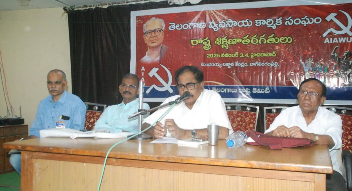 సంఘం రాష్ట్ర అధ్యక్షులు జి.నాగయ్య అధ్యక్షతన సోమవారం, మంగళవారం సుందరయ్య విజ్ఞాన కేంద్రం బాగ్ లింగంపల్లిలో జరుగుతున్న తెలంగాణ వ్యవసాయ కార్మిక సంఘం రాష్ట్రస్థాయి క్లాసులను ఉద్దేశించి తమ్మినేని వీరభద్రం మాట్లాడుతూ.. ఏక ధ్రువ ప్రపంచం నుండి బహుళ ధృవ ప్రపంచం వైపు పయనిస్తుందని, అమెరికా డాలర్ పెత్తనానికి వ్యతిరేకంగా బ్రిక్స్ దేశాల కూటమి చైనా నాయకత్వంలో ముందుకు వచ్చిందని, ఆయా దేశాల లోకల్ కరెన్సీలో ప్రపంచ వ్యాపారానికి ప్రాధాన్యత పెరిగిందని తెలిపారు. దీనిలో భారతదేశం కూడా భాగస్వామ్యం కావడానికి ముందుకు రావడం మంచి పరిణామం అని ఆయన అభిప్రాయపడ్డారు. నయా ఉదారవాద విధానాల వలన నిరుద్యోగం, పేదరికం, ఉపాధి కోసం వలసలు, నిత్యావసర సరుకుల ధరలు పెరుగుతున్నాయని, కార్మికుల వేతనాలు లేక ప్రజల కొనుగోలు శక్తి పెద్ద ఎత్తున పడిపోతున్నదని, ఆకలి కేకలు పెరుగుతున్నాయని అన్నారు.