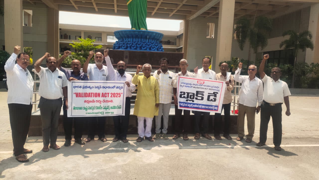వాలిడేషన్ ఆక్ట్ 2025 చట్టాన్ని నిరసిస్తూ బుధవారం జిల్లా కలెక్టర్ కార్యాలయం ఎదుట పెన్షనర్లు నిరసన ప్రదర్శన నిర్వహించారు. ఈ సందర్భంగా ఆయన మాట్లాడుతూ, 2025 మార్చి 25న పార్లమెంట్లో ప్రవేశపెట్టిన ఈ చట్టానికి ఏడాది పూర్తయినందున, ఈ తేదీని “బ్లాక్ డే”గా పాటిస్తున్నట్లు తెలిపారు.