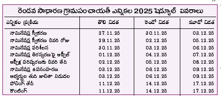 రాష్ట్రంలో గ్రామ పంచాయతీ ఎన్నికల నగారా మోగింది. రాష్ట్ర ఎన్నికల కమిషనర్‌ రాణి కుముదిని మంగళవారం హైదరాబాద్‌లో ఏర్పాటు చేసిన మీడియా సమావేశంలో నోటిఫికేషన్‌ను విడుదల చేశారు. అనంతరం ఎన్నికల ప్రక్రియను ఆమె వివరించారు. రాష్ట్ర వ్యాప్తంగా 31 జిల్లాల్లో 12,728 సర్పంచ్‌ స్థానాలకు, 1,12,242 వార్డు స్థానాలకు మొత్తం మూడు విడతల్లో ఎన్నికలు నిర్వహించబోతున్నట్టు చెప్పారు. డిసెంబర్‌ 11న మొదటి విడత, డిసెంబర్‌ 14న రెండవ విడత, డిసెంబర్‌ 17న మూడవ విడత పోలింగ్‌ నిర్వహిస్తున్నట్టు తెలిపారు. ఉదయం 7 గంటల నుంచి మధ్యాహ్నం ఒంటి గంట వరకు పోలింగ్‌ నిర్వహించి, అదే రోజు మధ్యాహ్నం 2 గంటల నుంచి ఓట్ల లెక్కింపు చేపట్టనున్నామని వివరించారు. ఉప సర్పంచ్‌ ఎన్నికను కూడా అదే రోజు నిర్వహిస్తున్నట్టు తెలిపారు. రాష్ట్ర వ్యాప్తంగా మోడల్‌ కోడ్‌ ఆఫ్‌ కండక్ట్‌ (ఎంసీసీ) మంగళవారం నుంచే అమల్లోకి వచ్చిందని రాణి కుముదిని పేర్కొన్నారు. గ్రామపంచాయతీ, ఎంపీటీసీ, జెడ్పీటీసీ ఎన్నికలకు మొదటి సారి సెప్టెంబర్‌ 29న ఎన్నికల షెడ్యూల్‌ ప్రకటించినప్పటికీ అక్టోబర్‌ 9న షెడ్యూల్‌పై హైకోర్టు స్టే విధించినట్టు తెలిపారు. ప్రస్తుతం రెండవ సారీ విడుదల చేస్తున్న నోటిఫికేషన్‌ ప్రక్రియ అమల్లో ఎలాంటి వివాదాలకు తావు లేకుండా చర్యలు తీసుకున్నట్టు తెలిపారు. నోటా అమల్లో ఉంటుందని ఆమె స్పష్టం చేశారు. బందోబస్తు, రవాణా తదితర కారణాల వల్ల మూడు దశల్లో ఎన్నికలను నిర్వహిస్తున్నట్టు వెల్లడించారు. ప్రతి దశకు రెండు రోజుల వ్యవధి ఇచ్చామని పేర్కొన్నారు. పంచాయతీ ఎన్నికలు పార్టీ రహితంగా నిర్వహిస్తు న్నందున వ్యవధి వల్ల మొదటి దశ ఎన్నికల ఫలితాలు తర్వాతి ఎన్నికల పై ఉండవని అభిప్రాయపడ్డారు. రాష్ట్ర వ్యాప్తంగా 4,236 సర్పంచ్‌ స్థానాలకు, 37,440 వార్డులకు తొలి దశలో ఎన్నికలు నిర్వహిస్తామని తెలి పారు. రెండో విడత ఎన్నికలకు ఈ నెల 30 నుంచి, మూడో విడత ఎన్ని కలకు డిసెంబర్‌ 3 నుంచి నామినేష న్లు స్వీకరించనున్నట్టు వివరించారు. రెండో విడతలో 4,333 సర్పంచ్‌ స్థానాలు,38,350 వార్డులకు,మూడో విడతలో 4,159 సర్పంచ్‌ స్థానాలు, 36,452 వార్డులకు పోలింగ్‌ నిర్వ హించనున్నట్టు వెల్లడించారు.రాష్ట్రం లోని 299వార్డులు, 32 గ్రామ పంచాయతీల్లో కోర్టు కేసులు, ఇతర వివాదాల వల్ల ఎన్నికలు వాయిదా పడ్డాయని తెలిపారు. అందులో ములుగు జిల్లా మంగపేట మండలంలోని 25 గ్రామాలు, కరీంనగర్‌ జిల్లా వి.సైదాపూర్‌ మండలంలోని 2 గ్రామాలు, ఖమ్మం జిల్లా ఏన్కూర్‌ మండలంలో 4 గ్రామాలు, పెనుబల్లి మండలంలో ఒక గ్రామం ఉన్నాయని తెలిపారు. కోర్టు ఆదేశాల మేరకు ఆగిన పంచాయతీల్లో ఎన్నికలు నిర్వహించనున్నట్టు తెలిపారు. ఈ సమావేశంలో శాంతి భద్రతల జీపీ మహేశ్‌భగవత్‌,, పంచాయతీరాజ్‌, గ్రామీణాభివృద్ధి శాఖ డైరెక్టర్‌ సృజన