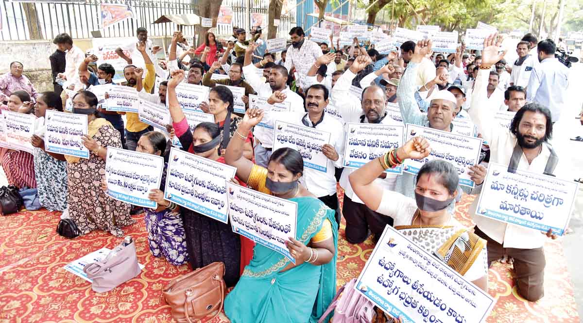 ఇందిరాపార్క్ వద్ద జేఏసీ ఆధ్వర్యంలో నిరసన