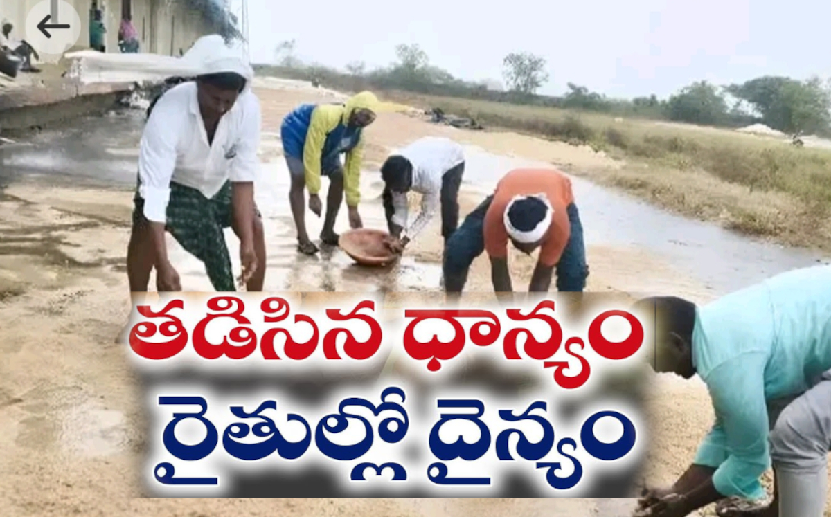 తడిసిన ధాన్యంతో అన్నదాతల కన్నీరు