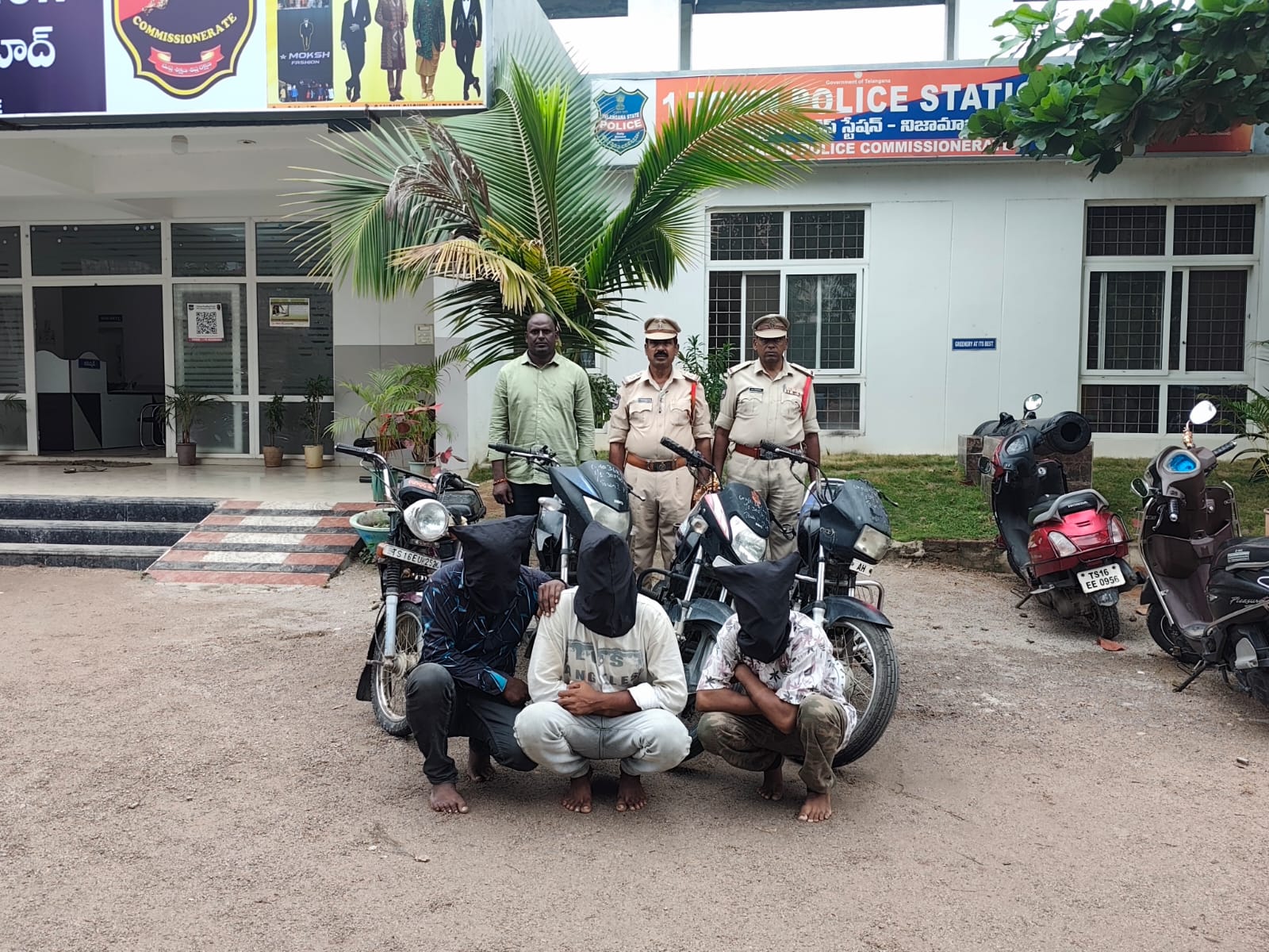 వారు నడుపుతున్న బైక్ ను మహాలక్ష్మి హాస్పిటల్ నుండి దొంగాలించినట్టు ఒప్పుకొని, వారు చెడు అలవాట్లకు బానిసై వారి జల్సాలకు డబ్బులు లేక బైక్ల దొంగతనాలు చేసి వాటిని అమ్ముకొని వచ్చిన డబ్బులతో వారి జల్సాలకు వాడుకోవచ్చు అనే ఉద్దేశంతో దొంగతనాలు చేస్తున్నట్టు, అలాగే ఇదువరకే ప్రభుత్వ ఆసుపత్రి లో ఒక బైక్ ను దొంగతనం చేసి దాన్ని వినాయక నగర్ కి చెందిన షేక్ గౌస్ అనే వ్యక్తి కి అమ్మగా, దొంగ బండి అని తెలిసి కూడా కొన్నాడు, ఇవే కాకా అర్యనగర్ లో ఒక టీవీఎస్ ఎక్సెల్ ను, వీక్లీ మార్కెట్ లో మరొక బైక్ ను దొంగిలించి వాటిని రైల్వే స్టేషన్ వద్ద గల చెట్ల పొదల్లో దాచినట్టు ఒప్పుకున్నారు. వారి వద్ద నుండి మూడు బైక్ లను స్వాదినపర్చుకున్నట్లు, వీరితో పాటు షేక్ గౌస్ ను కూడా పట్టుకొని అతని వద్ద నుండి కూడా బైక్ ను స్వాదినపర్చుకొని, ముగ్గురిని కూడా అరెస్ట్ చేసి జ్యుడిసియల్ రిమాండ్ కు తరలించినట్లు ఎస్ హెచ్ ఓ రఘుపతి తెలిపారు.