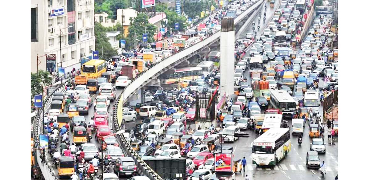 దేశంలో ఇప్పటివరకు ట్రాఫిక్లు రద్దీ ఉన్న నగరాల్లో ఢిల్లీ, ముంబాయి, బెంగళూరు ఉండేవి. వాటి స్థానంలో హైదరాబాద్ కూడా చేరిపోయింది. ఒక నగరం ముందుకెంత సాగుతుందో కాకుండా, ఎంతసేపు ‘నిలబడు’ తోందో కూడా అభివృద్ధికి ప్రమాణంగా మారుతోంది. ఇది మన ఉత్పాదకశక్తిని కూడా నీరుగారుస్తోందని నిపుణుల అభిప్రాయం. దీనికి అనారోగ్యం అదనం. గంటల తరబడి ట్రాఫిక్ జామ్లతో కాలుష్యం పెరిగి గాలి నాణ్యత క్షీణి స్తోంది. పదేళ్ల కిందట 60- 80 మధ్య ఉన్న ఎక్యూఐ ఇప్పుడు సగటున 110-180 వరకు పెరిగింది. శీతాకాలంలో ఇది మూడు వందలు దాటుతోంది. వాహనాలనుంచి ఎగిసే పొగతో శ్వాసకోస సమస్యలు, అలర్జీలు, హృద్రోగాలు పెరుగుతున్నాయి. చిన్నపిల్లల నుంచి వృద్ధుల వరకు వ్యాధుల బారిన పడుతున్నారు. గతంతో పోలిస్తే నలభై నుంచి అరవైశాతం వ్యాధులు పెరిగినట్టు అంచనా. ఇది నగరంలో మనిషి జీవించే పరిస్థితి లేదని చెప్పే సూచిక. ఇదంతా చూసినప్పుడు మనిషి సగటు ఆయురార్థం జీవితకాలంలో మూడు నాలుగేళ్లు తగ్గుతుందని వైద్యుల భావన. పైగా ట్రాఫిక్లో గడిపే సమయం పెరిగేకొద్దీ మానసిక ఒత్తిడి, చిరాకు, అలసట-ఇది దీర్ఘకాలంలో సగటు ఆయుష్షుపై కూడా ప్రభావం చూపుతుంది.