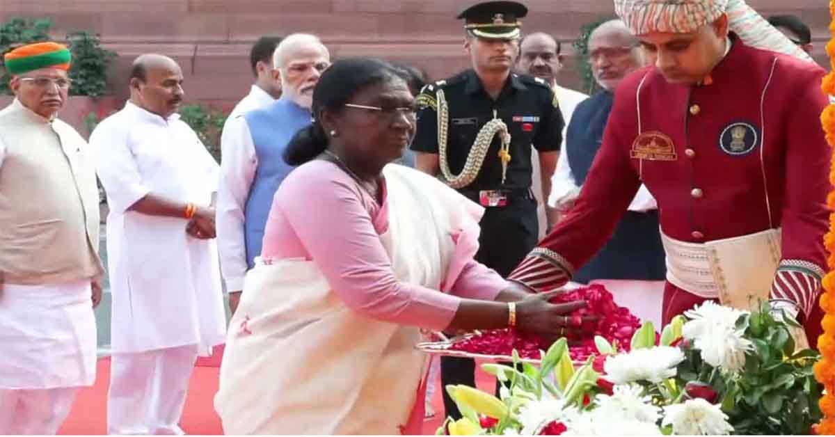 నవతెలంగాణ-హైదరాబాద్: మహాత్మా జ్యోతిబా పూలే 200వ జయంతి సందర్భంగా పార్లమెంట్ ప్రాంగణంలోని ‘ప్రేరణ స్థల్’లో ఉన్న జ్యోతిబా పూలే విగ్రహానికి మోడీ, రాహుల్ గాంధీ నివాళులర్పించారు. తొలుత రాష్ట్రపతి ద్రౌపది ముర్ము, ఉపాధ్యక్షుడు సీపీ రాధాకృష్ణన్ నివాళులర్పించగా.. అనంతరం ప్రధాని నరేంద్ర మోడీ, లోక్సభ స్పీకర్ ఓం బిర్లా, లోక్సభ ప్రతిపక్ష నేత రాహుల్ గాంధీ, తదితరులు చిత్రపటానికి పూలమాలలు వేసి నివాళులర్పించారు.