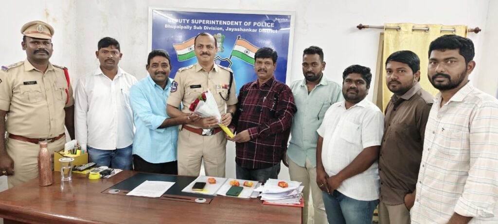 నూతన సంవత్సరం 2026ను పురస్కరించుకొని భూపాలపల్లి జిల్లా ఎస్పీని తెలంగాణ వర్కింగ్ జర్నలిస్ట్స్ ఫెడరేషన్ (టీడబ్ల్యూజేఎఫ్) నాయకులు మర్యాద పూర్వకంగా కలిశారు. శనివారం జిల్లా కేంద్రంలోని ఎస్పీ కార్యాలయంలో జిల్లా ఎస్పీ సిరిశెట్టి సంకీర్త్, జిల్లా అదనపు ఎస్పీ నరేష్ కుమార్, అదేవిధంగా భూపాలపల్లి పోలీస్ స్టేషన్ లో డిఎస్పి సంపత్ రావు,సిఐ నరేష్ కుమార్, ఎస్సై సాంబమూర్తి లను వేరు వేరుగా కలిసి పూల బొకే అందించి నూతన సంవత్సర శుభాకాంక్షలు తెలిపారు. ఈ కార్యక్రమంలో తెలంగాణ వర్కింగ్ జర్నలిస్ట్స్ ఫెడరేషన్ (టీడబ్ల్యూజేఎఫ్) జిల్లా అధ్యక్షులు ఎర్రం సతీష్ కుమార్, కార్యదర్శి గుజ్జ సారేశ్వరరావు, కోశాధికారి మండల రాంబాబు, బ్రాడ్ కాస్ట్ అసోసియేషన్ జిల్లా అధ్యక్షులు ఆకుతోట ప్రవీణ్ కుమార్, కోశాధికారి ఏనుగుల భాస్కర్,మీడియా జిల్లా కన్వీనర్ పుల్ల సృజన్,జిల్లా కమిటీ సభ్యులు మంద జోవర్ధన్ తదితరులు ఉన్నారు.