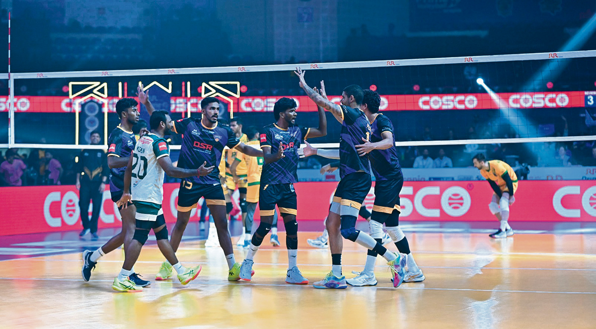 హైదరాబాద్ : ప్రైమ్ వాలీబాల్ లీగ్ (పీవీఎల్) నాల్గో సీజన్లో బెంగళూరు టార్పెడోస్ జోరు కొనసాగుతుంది. సీజన్లో ఆడిన నాలుగు మ్యాచుల్లోనూ గెలుపొందిన బెంగళూరు టార్పెడోస్ పాయింట్ల పట్టికలో అగ్రస్థానానికి చేరుకుని సెమీఫైనల్ బెర్త్కు చేరువైంది. సోమవారం హైదరాబాద్లోని జిఎంసీ బాలయోగి ఇండోర్ స్టేడియంలో జరిగిన పీవీఎల్ గ్రూప్ దశ మ్యాచ్లో చెన్నై బ్లిట్జ్పై 17-15, 14-16, 17-15, 16-14తో బెంగళూరు టార్పెడోస్ ఉత్కంఠ విజయం సాధించింది.