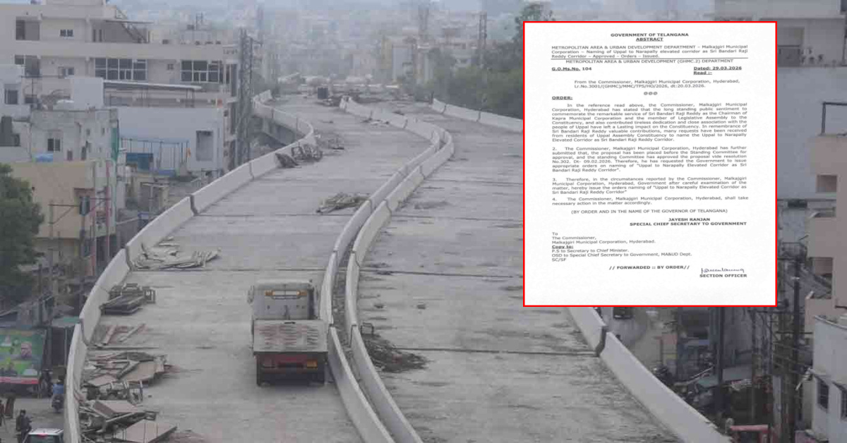 నవతెలంగాణ – హైదరాబాద్ : హైదరాబాద్లోని ఉప్పల్ నుంచి నారపల్లి వరకు నిర్మాణంలో ఉన్న ఎలివేటెడ్ కారిడార్కు ‘బండారి రాజిరెడ్డి కారిడార్’గా నామకరణం చేస్తూ రాష్ట్ర ప్రభుత్వం ఉత్తర్వులు జారీ చేసింది. ఉప్పల్ నియోజకవర్గానికి బండారి రాజిరెడ్డి చేసిన సేవలను స్మరించుకుంటూ ఈ నిర్ణయం తీసుకున్నారు. మల్కాజిగిరి నగరపాలక సంస్థ స్టాండింగ్ కమిటీ ప్రతిపాదన మేరకు, ఫిబ్రవరి 9న ప్రభుత్వానికి నివేదించగా, రాష్ట్ర ప్రభుత్వం ఆమోదించింది. ప్రభుత్వ ప్రత్యేక ప్రధాన కార్యదర్శి జయేశ్ రంజన్ ఈ ఉత్తర్వులు జారీ చేశారు.